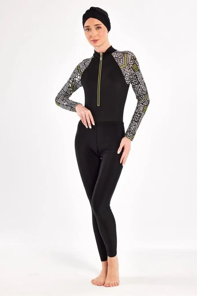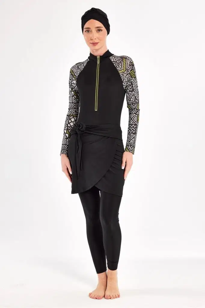 Adasea 251112 Judy Siyah 3 Farklı Şekilde Giyilebilir Likralı Tam Kapalı Tesettür Mayo