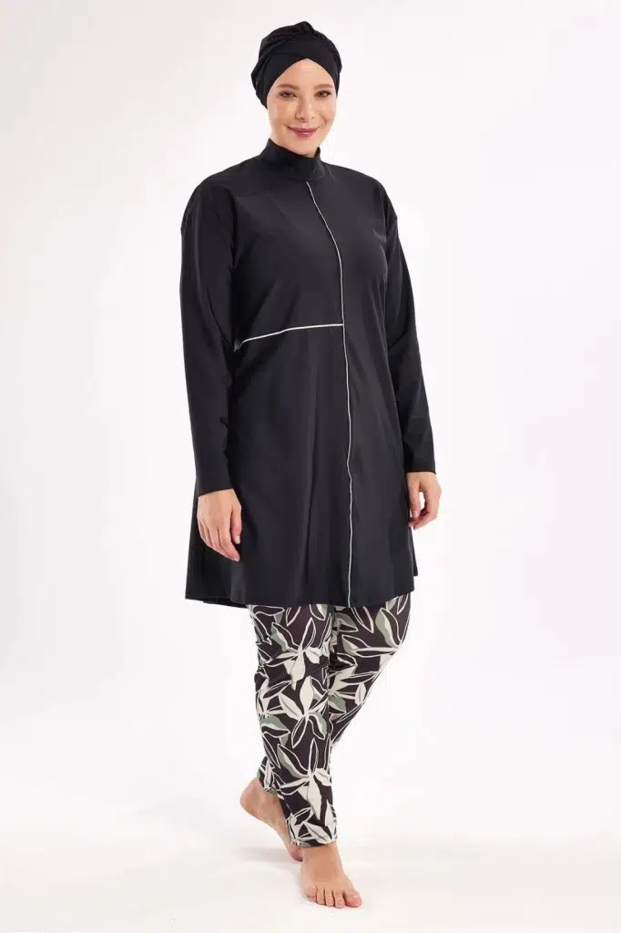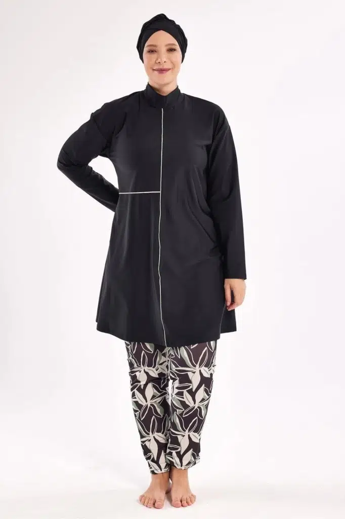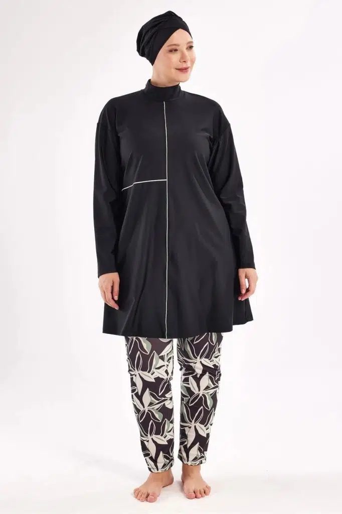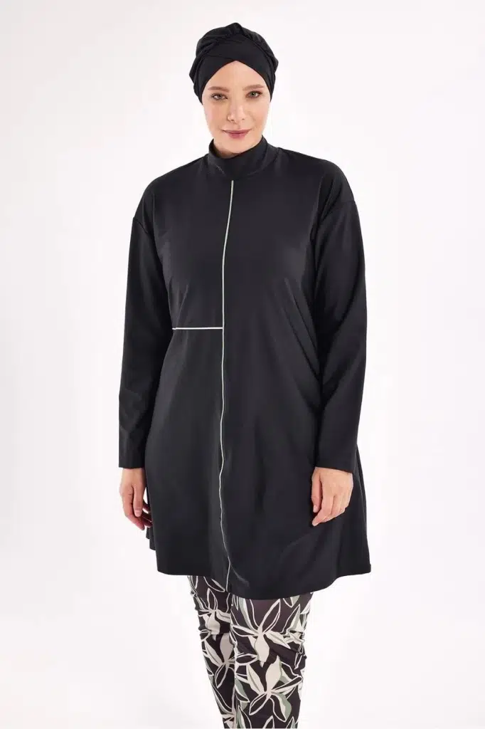 Adasea 251801 Siyah Büyük Lycralı Tam Boy Uzun Kol Mayo