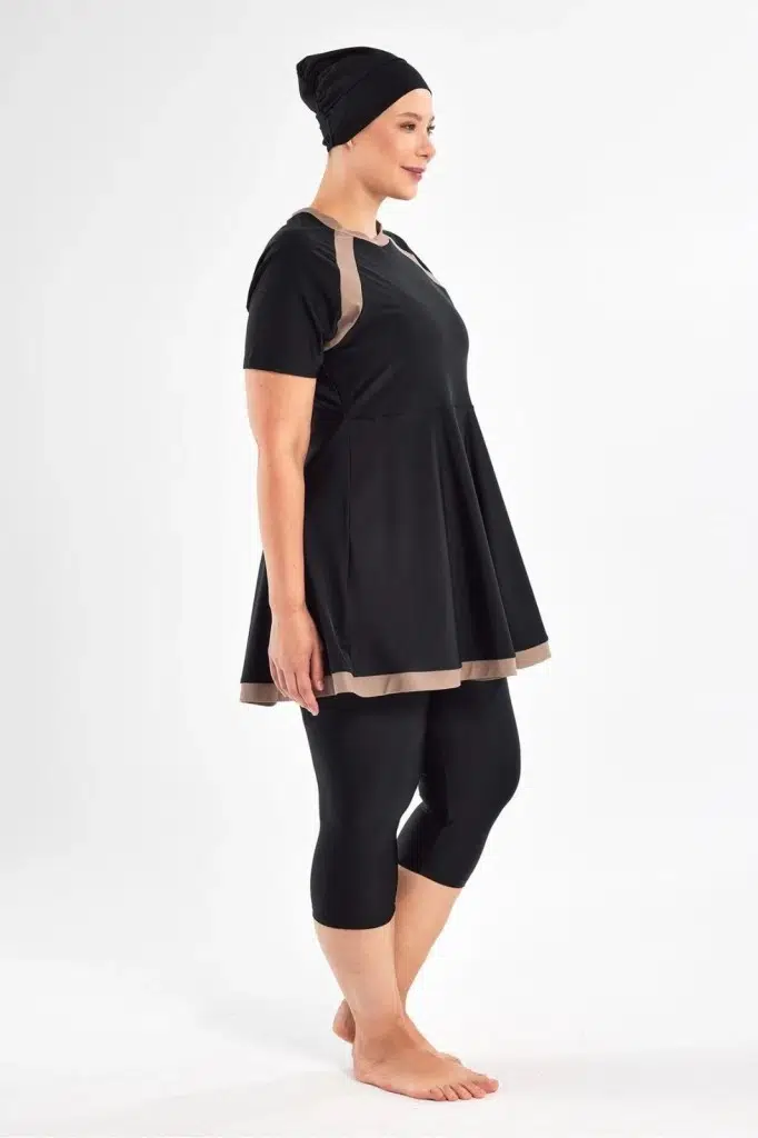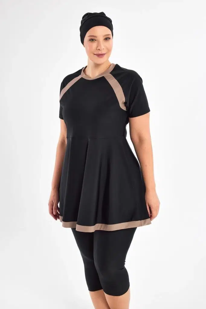 Adasea 251806 Bella Siyah Büyük Beden Kısa Kol Taytlı Mayo
