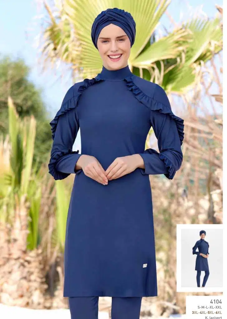 ADASEA 4104 Lacivert Fırfır Detaylı Tasarım Tesettür Mayo