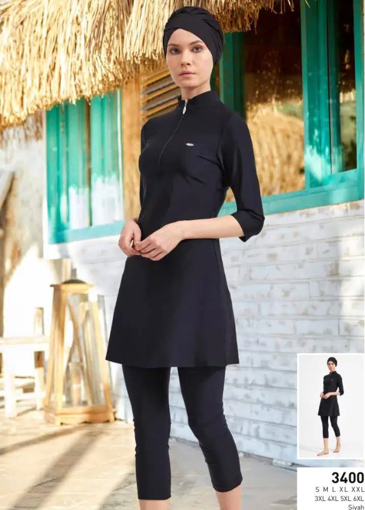 | Etiketler | Adasea Anda Battal 3400 Siyah Diresk Kol Fermar Detaylı Yarı Kapalı Battal Tesettür Mayo |