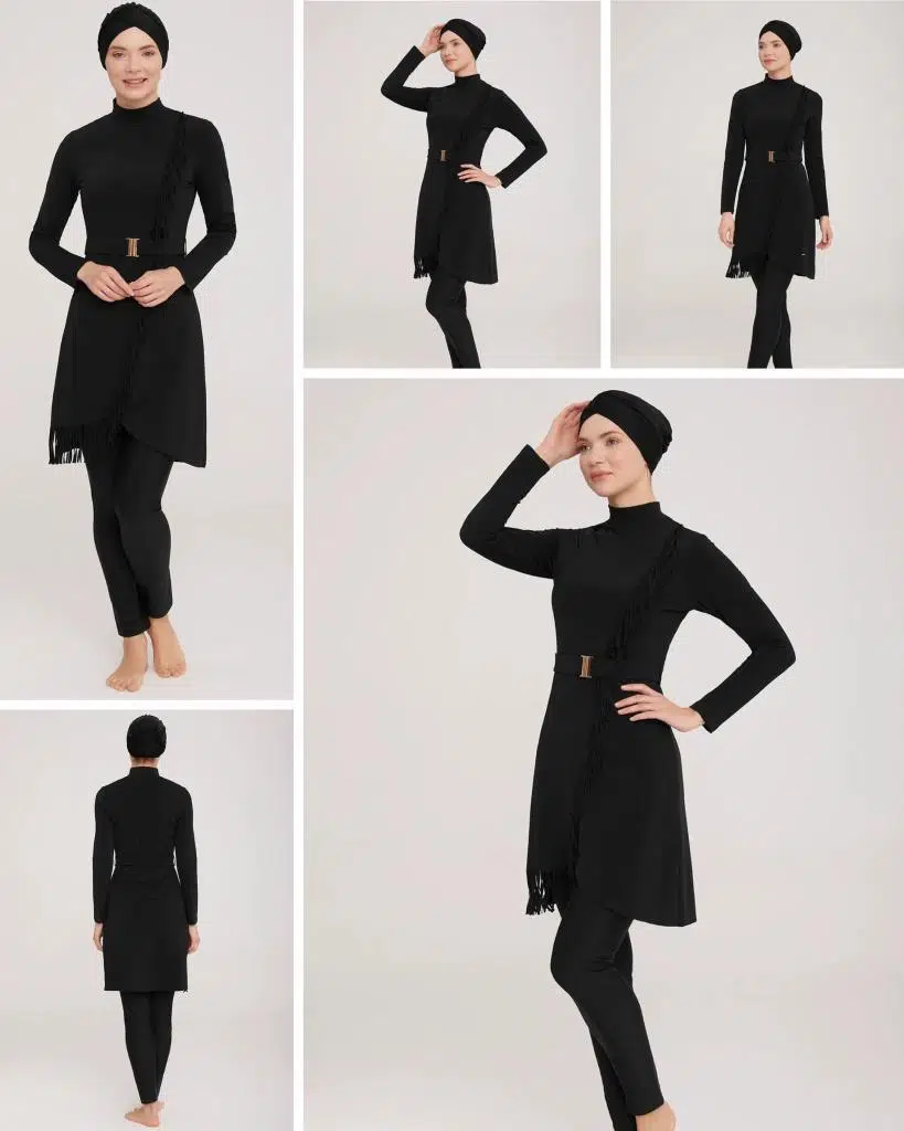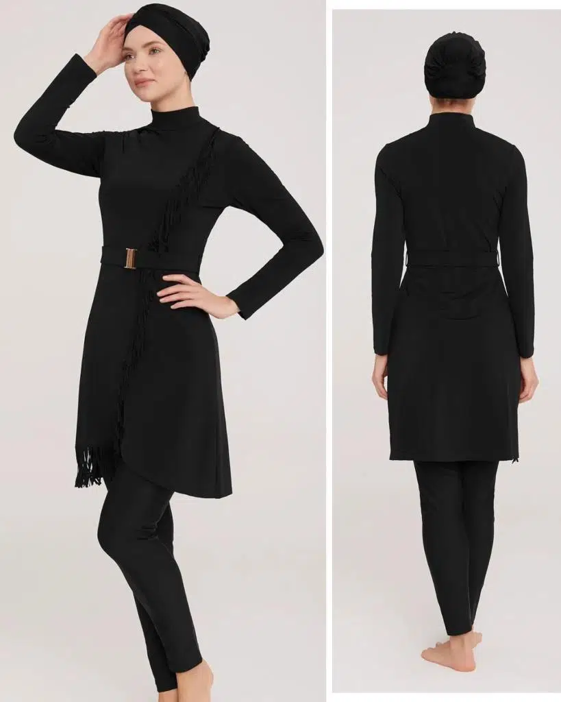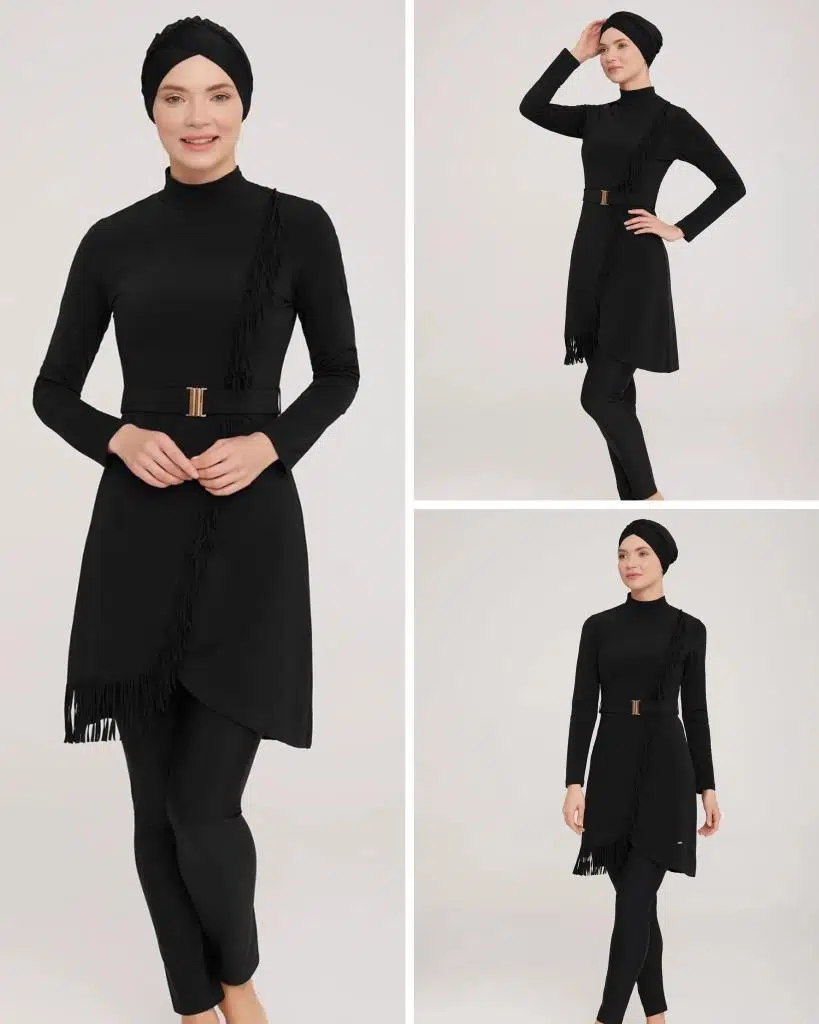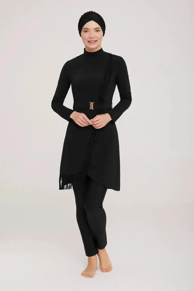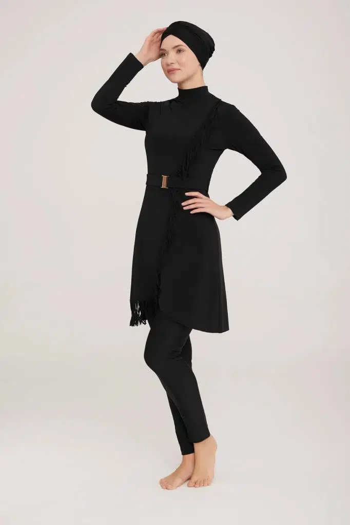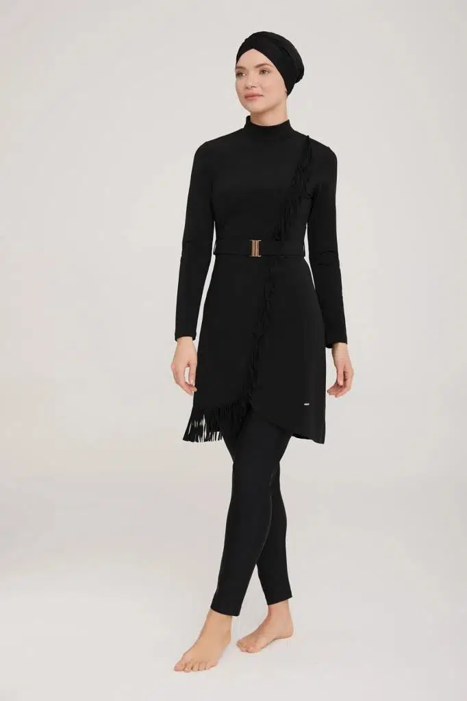 PÜSKÜL VE KEMER DETAYLI ŞIK TESETTÜR MAYO