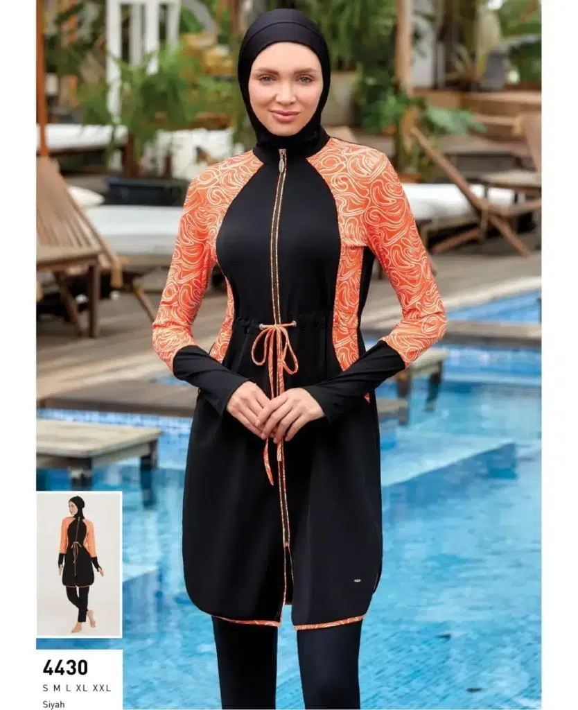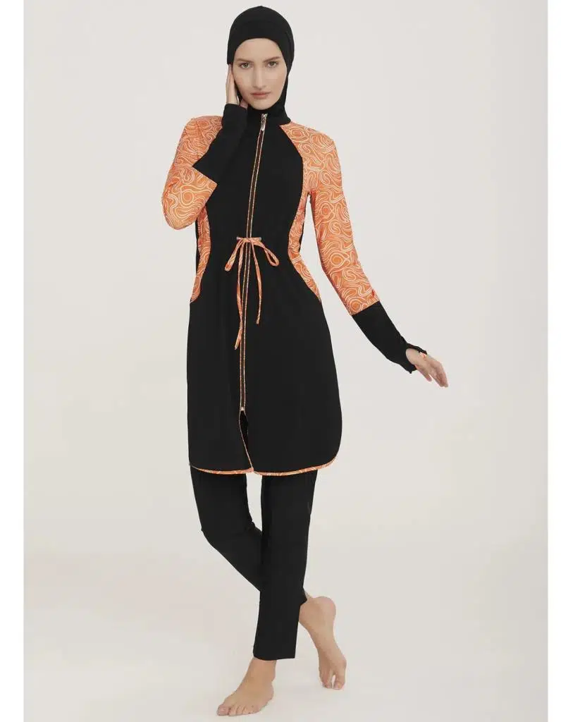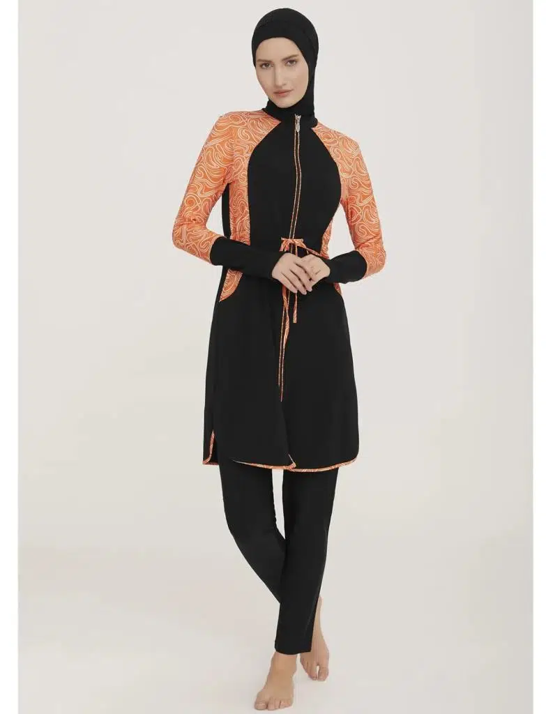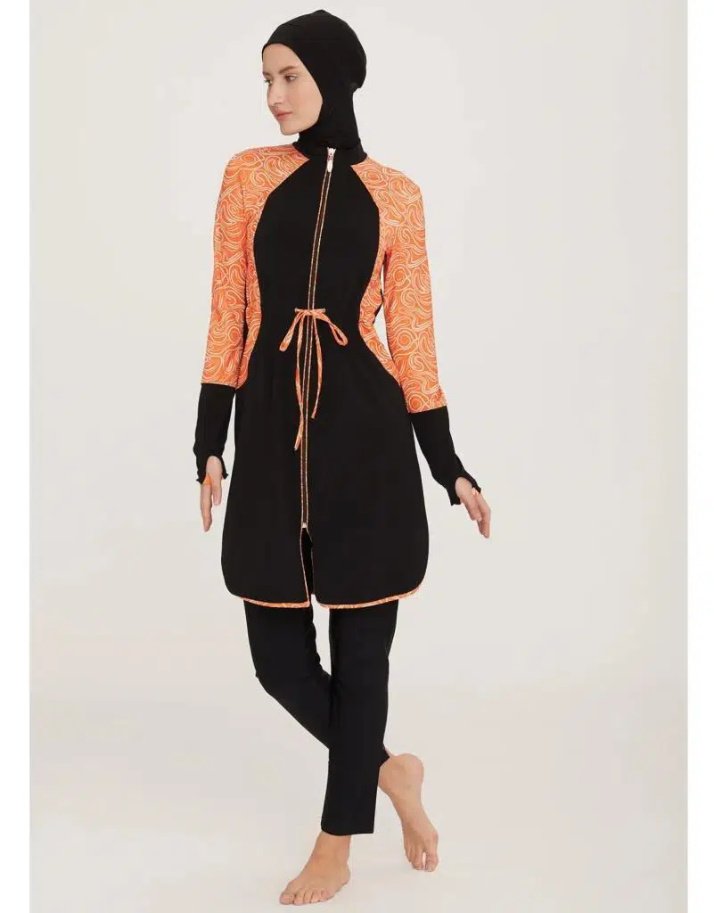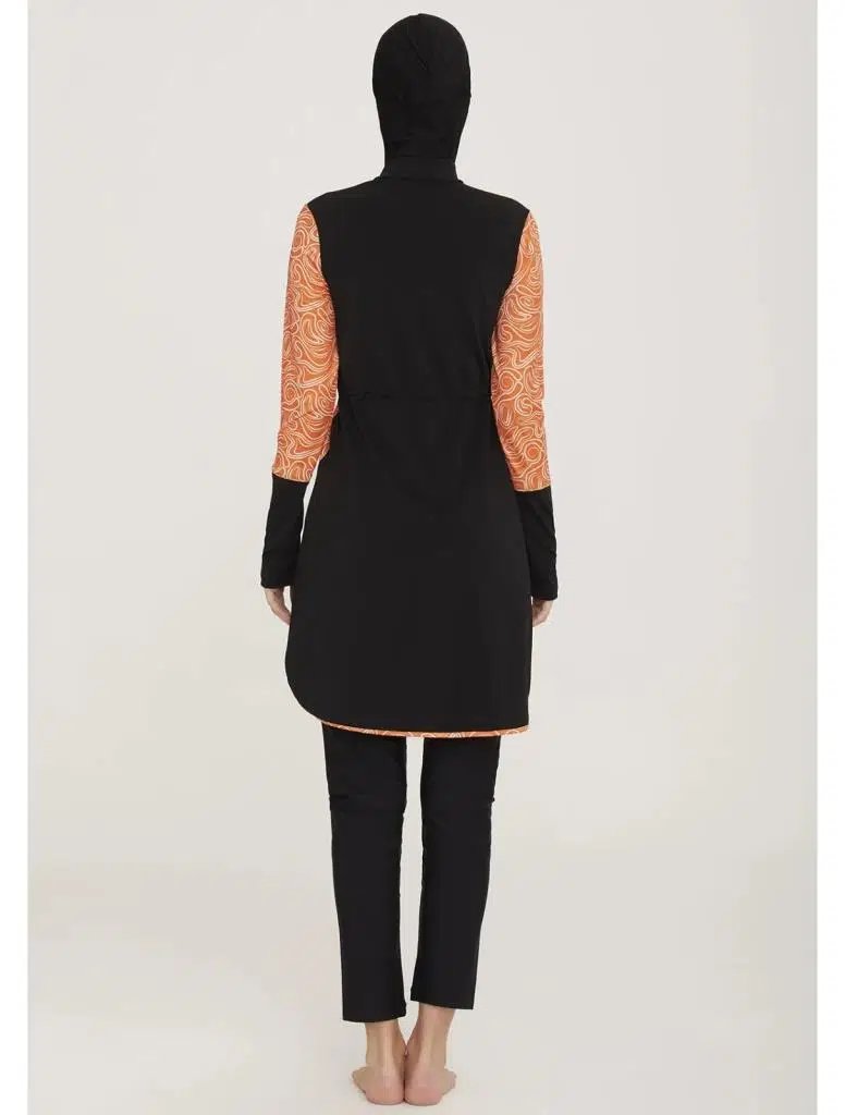 Adasea Inesa 4431 Siyah Turuncu Tam Boy Tasarım Tesettür Mayo