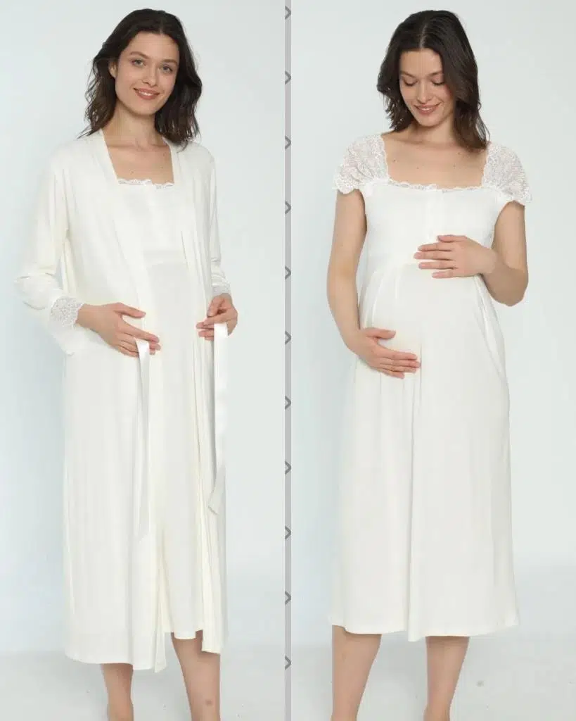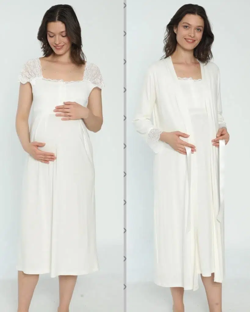 BİROLGAYE 1001 ECRU Hamile Lohusa Gecelik Sabahlık Takım