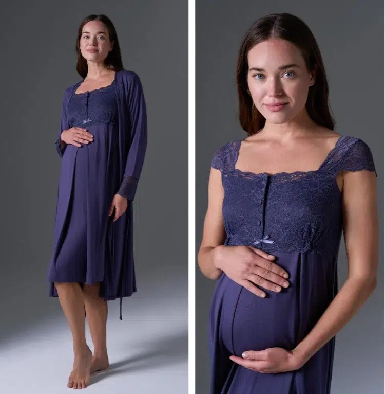 BirolGaye 1764 Lacivert Hamile Lohusa Gecelik Sabahlık Tk