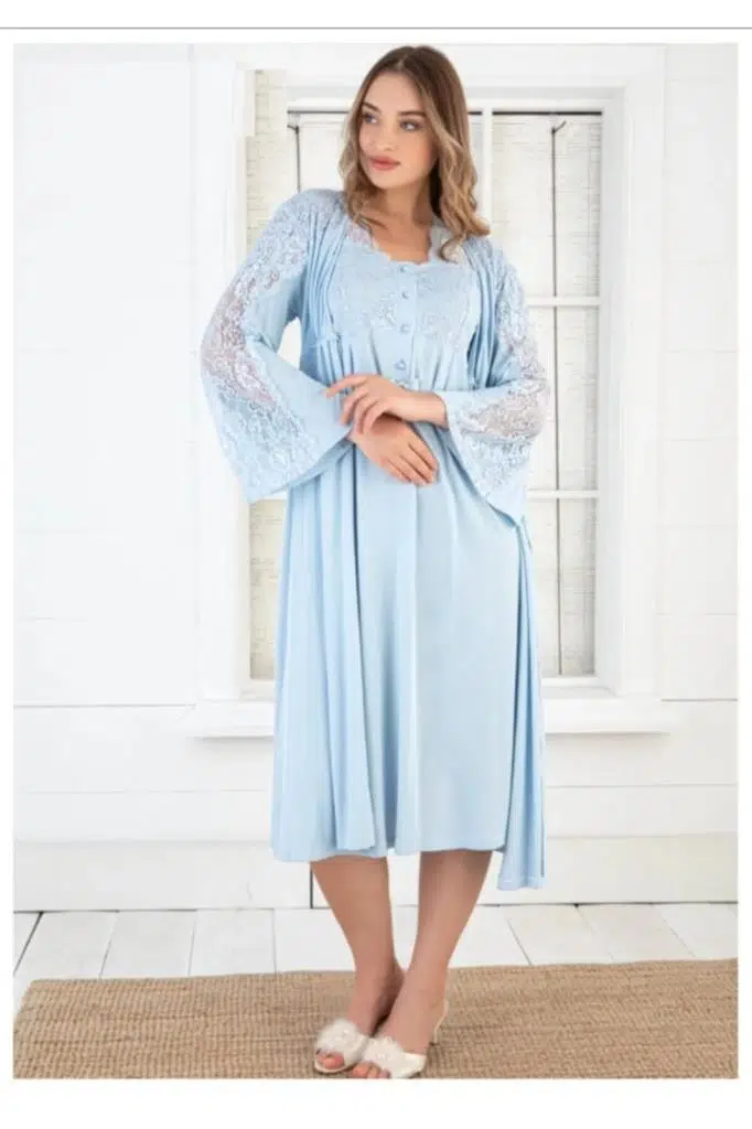 LOHUSA GECELİK SABAHLIK TAKIMMIZ UZUN KOL ŞIK DANTEL DETAYLIDIR.