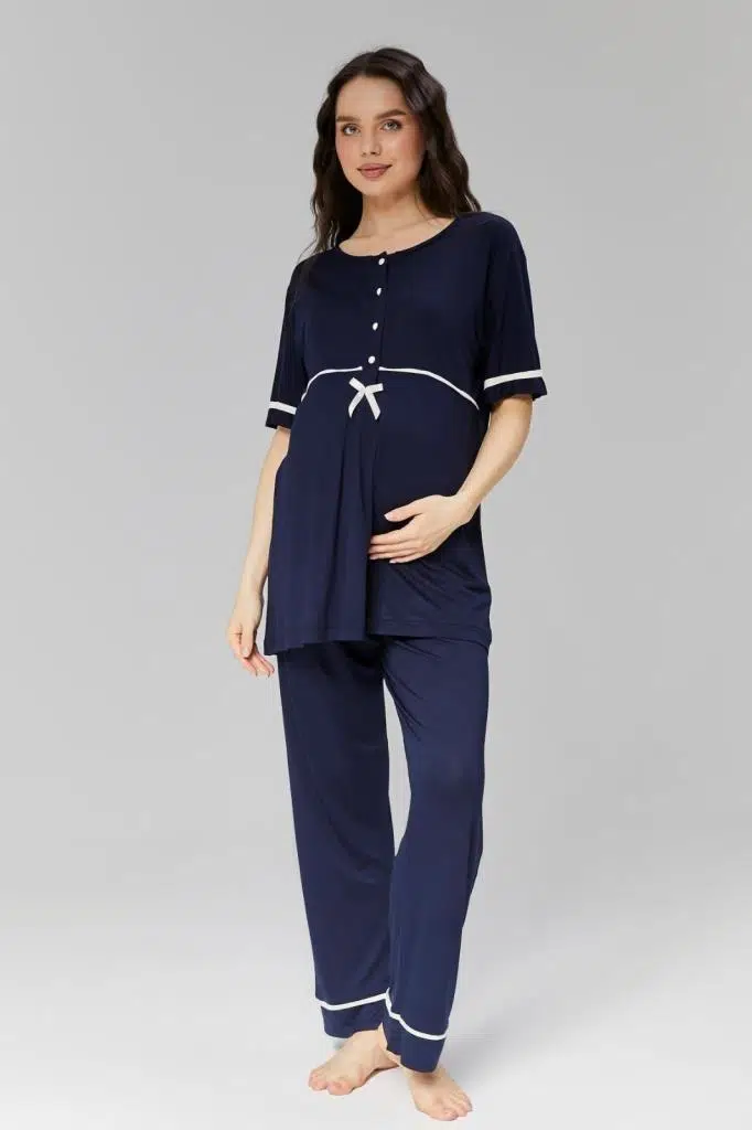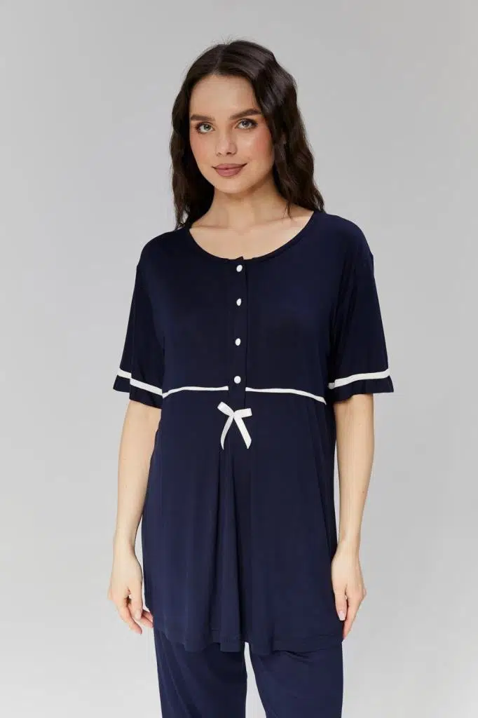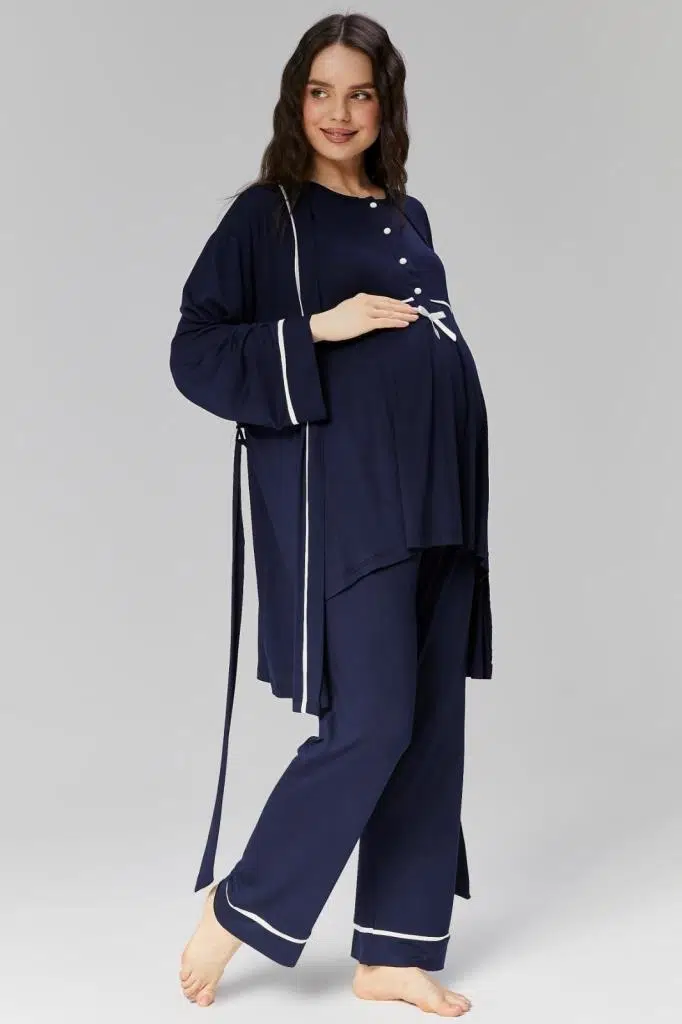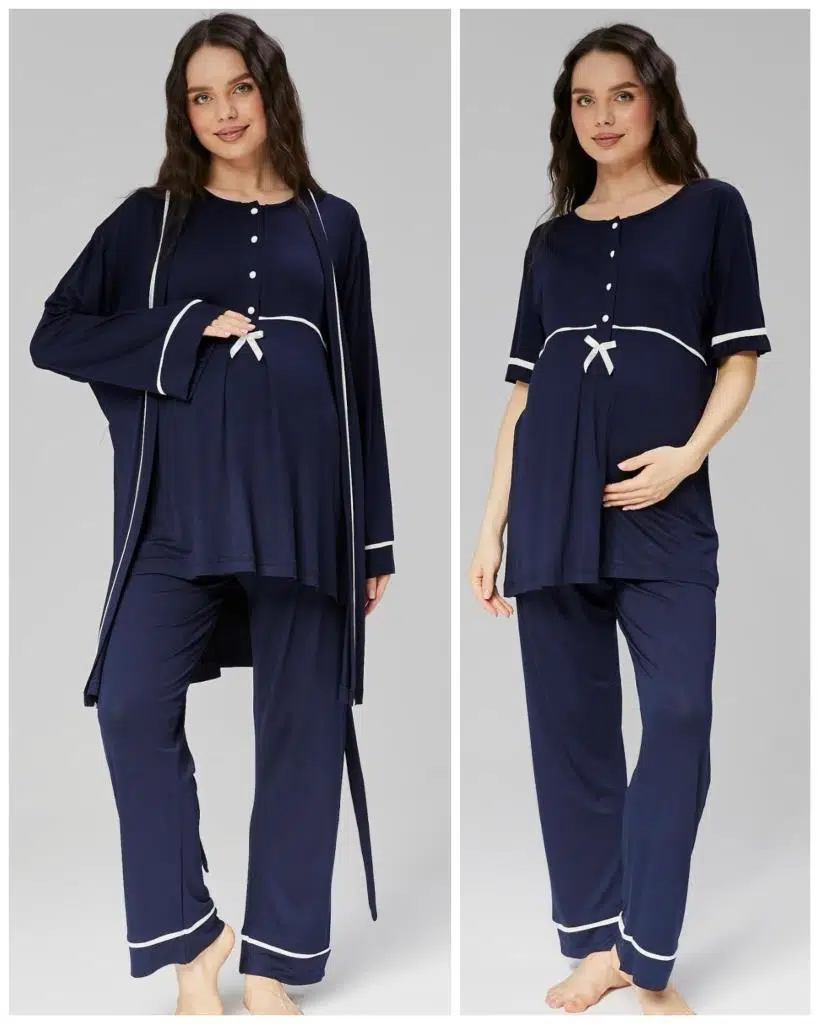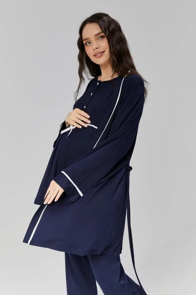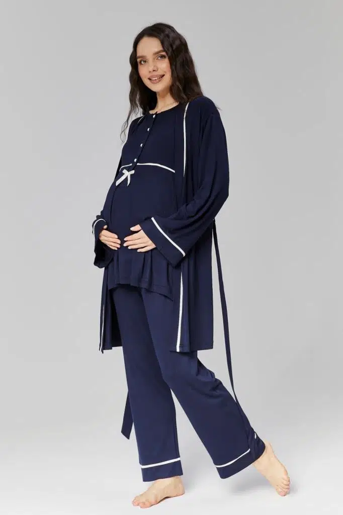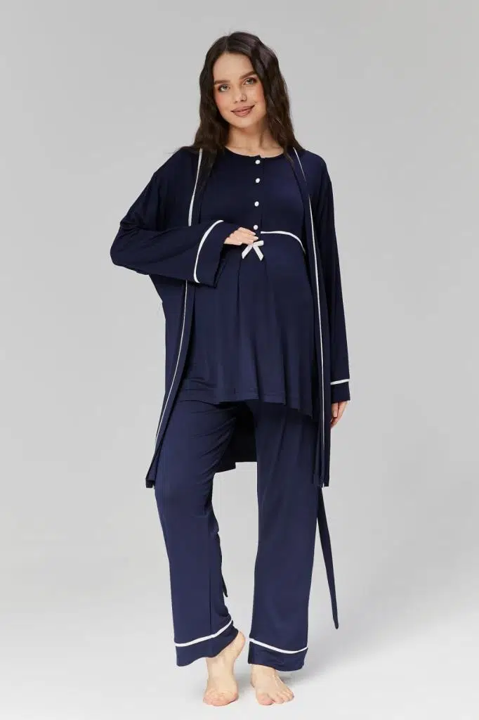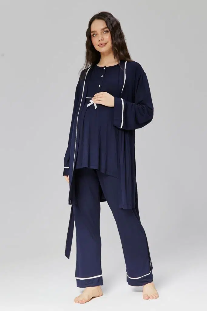 BirolGaye 509 Lacivert Hamile Lohusa 3 Lü Pijama Sabahlık Tk