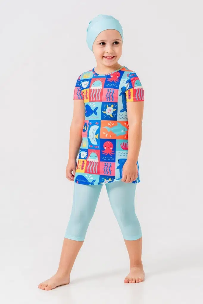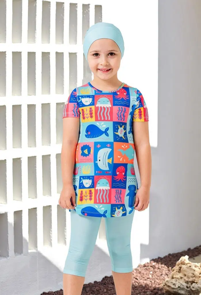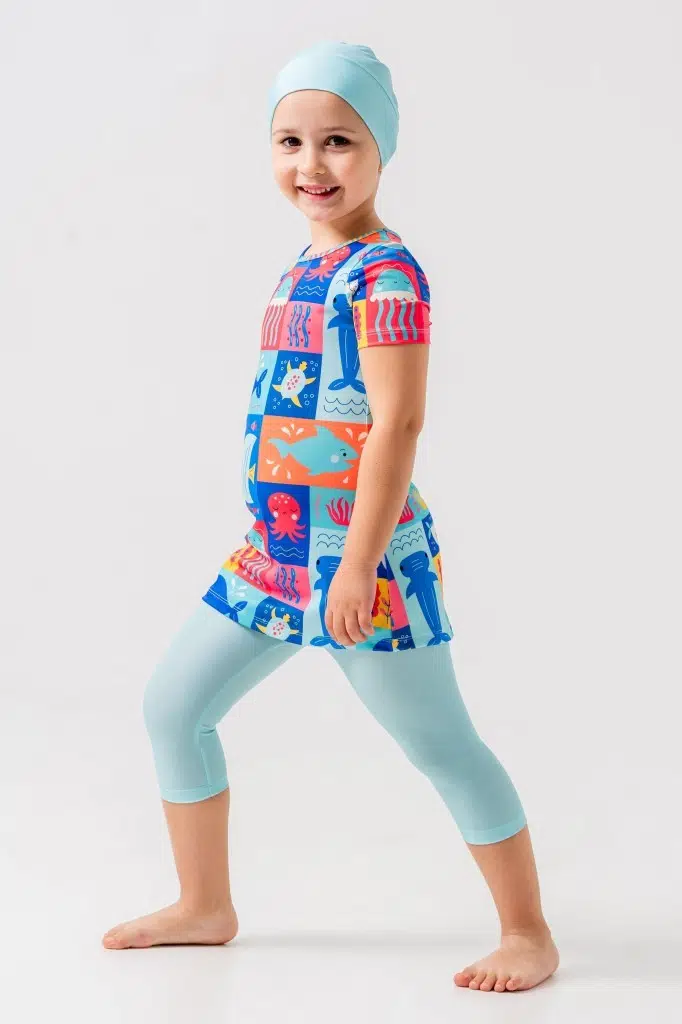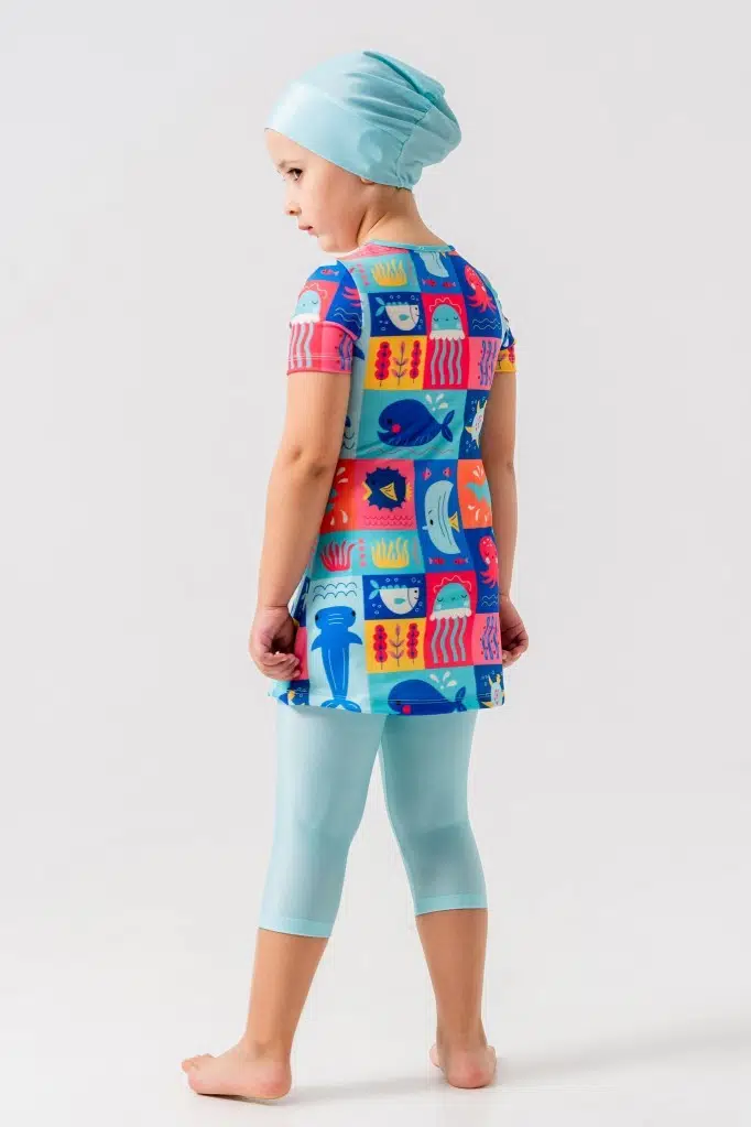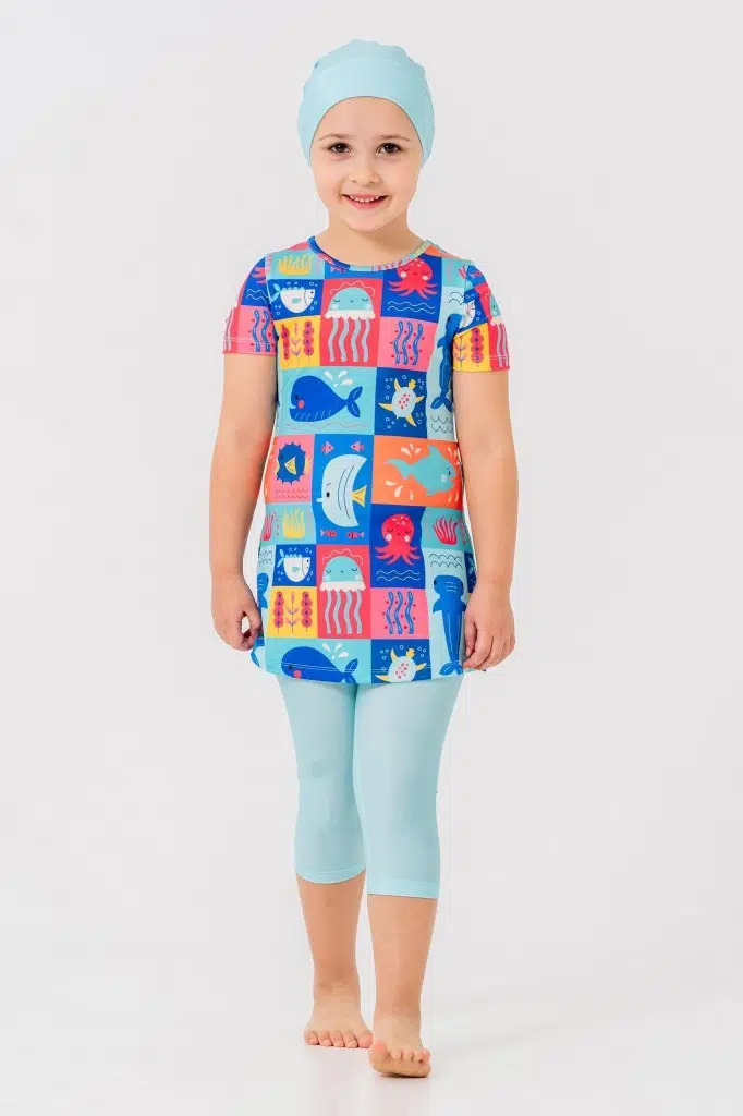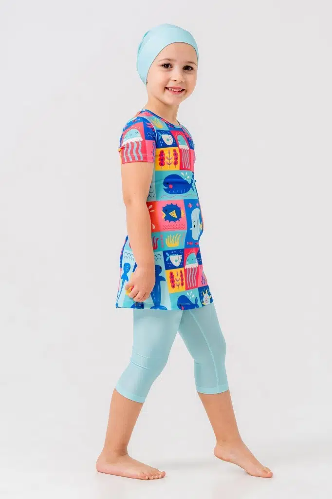 BirolGaye Adasea 251913 Lonas Turkuaz Kısa Kol Çocuk Tesettür Mayo