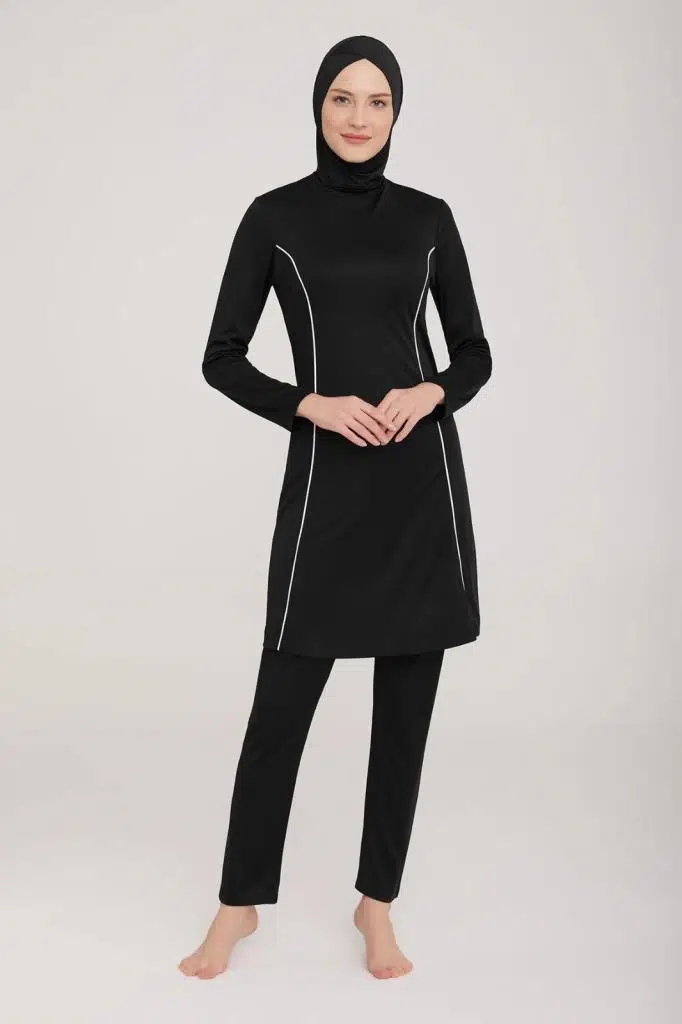 BirolGaye Rozamay 9021 Siyah Lycralı Tam Boy Tesettür Mayo