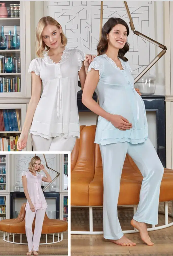 BONE CLUB 4711 HAMİLE LOHUSA YAKMA DANTELLİ LOHUSA PİJAMA TAKIMI