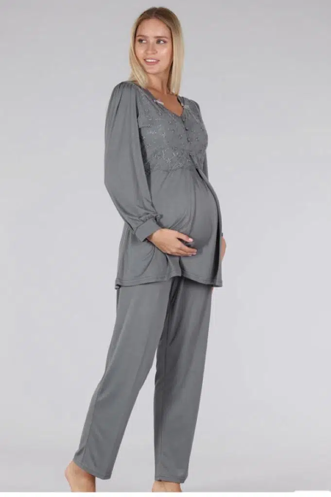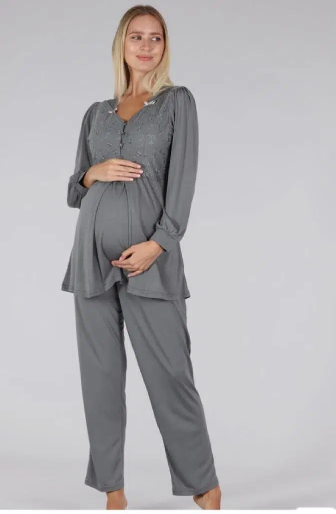 Bone Club 5306 Gri V Yaka Lohusa Pijama Tk