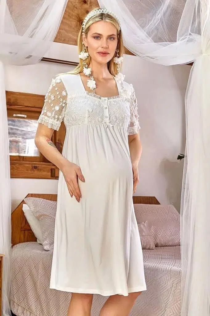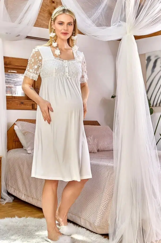 Cossy by Aqua 24168 Çiçek Detaylı Hamile Lohusa Gecelik