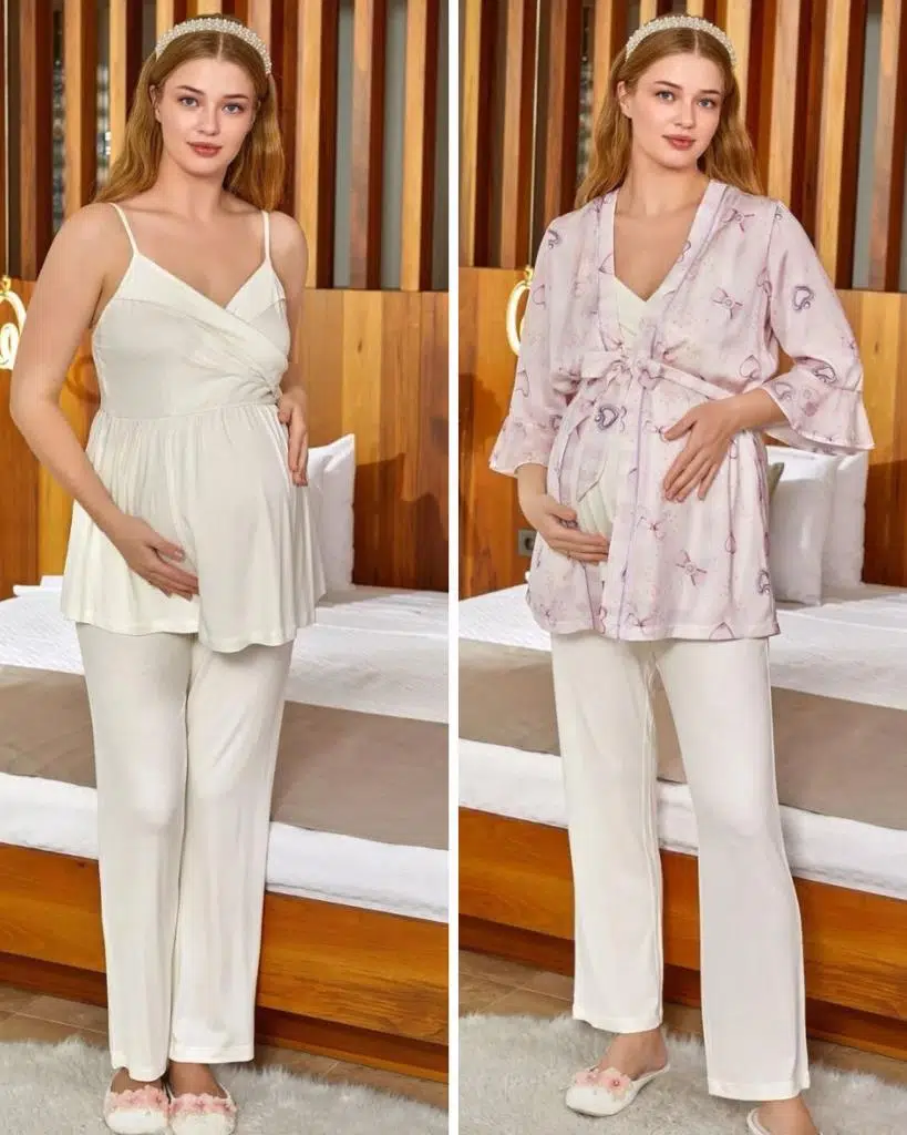 Cossy By Aqua 24527 Saten Sabahlıklı İp Askılı Hamile Lohusa 3 Lü Pijama Sabahlık Tk