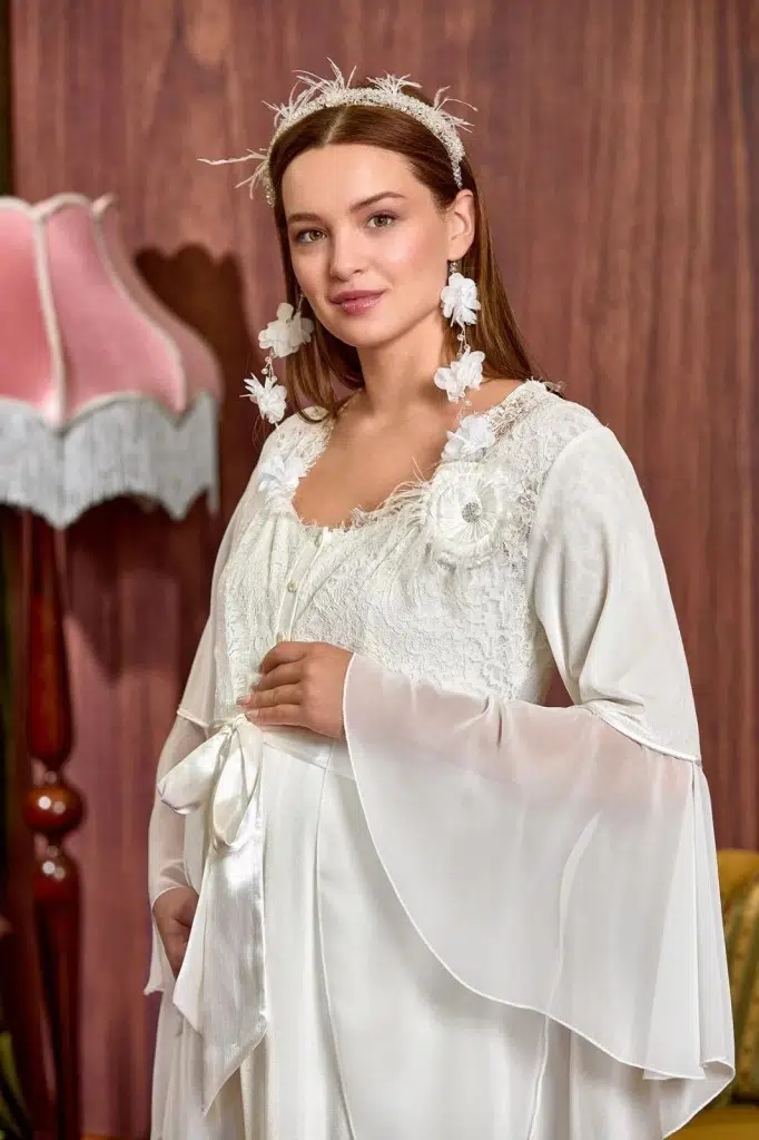 CossybyAqua 25134 Kadife Dantel Detaylı Lohusa Sabahlık