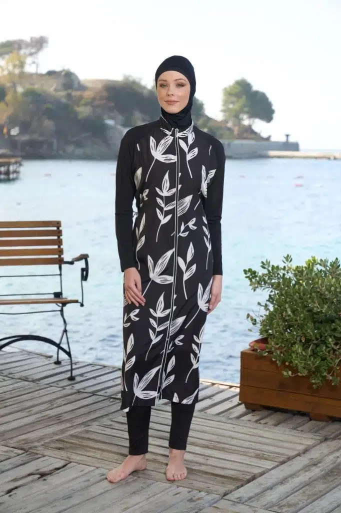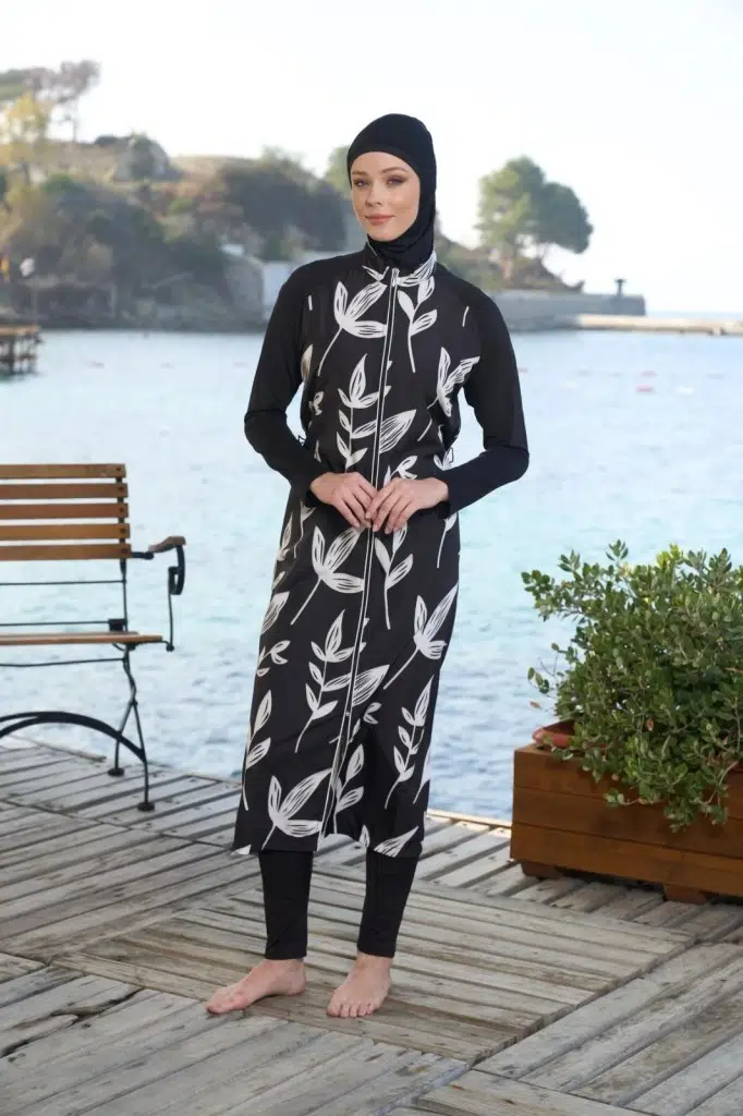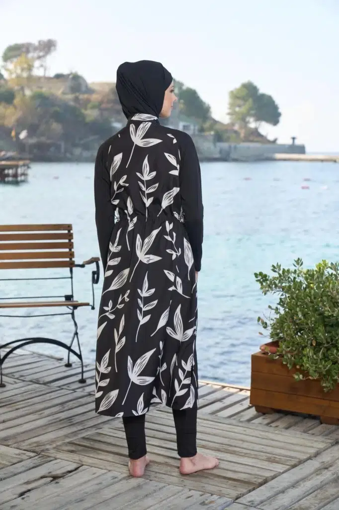 Estiva 25980 Siyah Dijital Desenli Tam Boy Lycralı Tesettür Mayo
