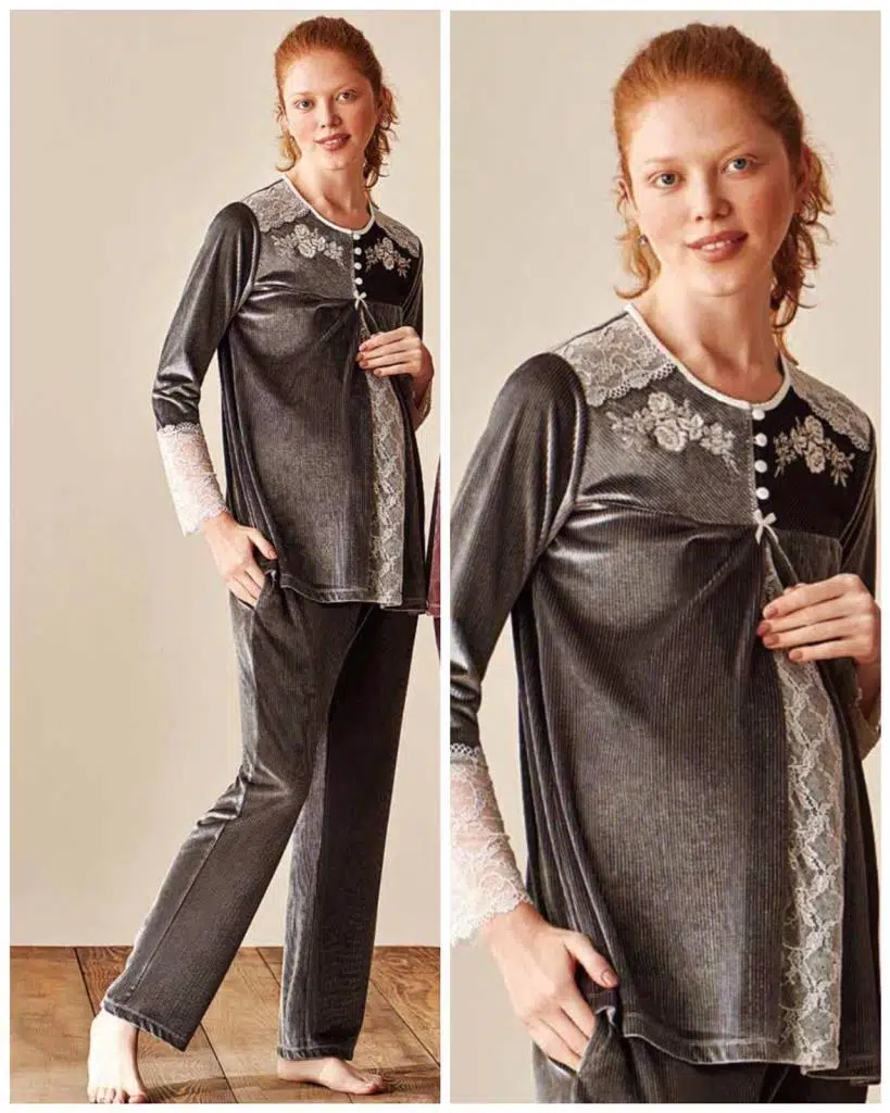 Feyza 3922 Gri Kadife Hamile Lohusa Pijama Takımı