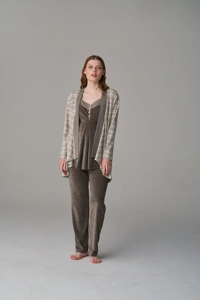 Feyza Pijama 4623 Antrasit Elan 3Lü Hamile Lohusa Pijama Sabahlık Tk