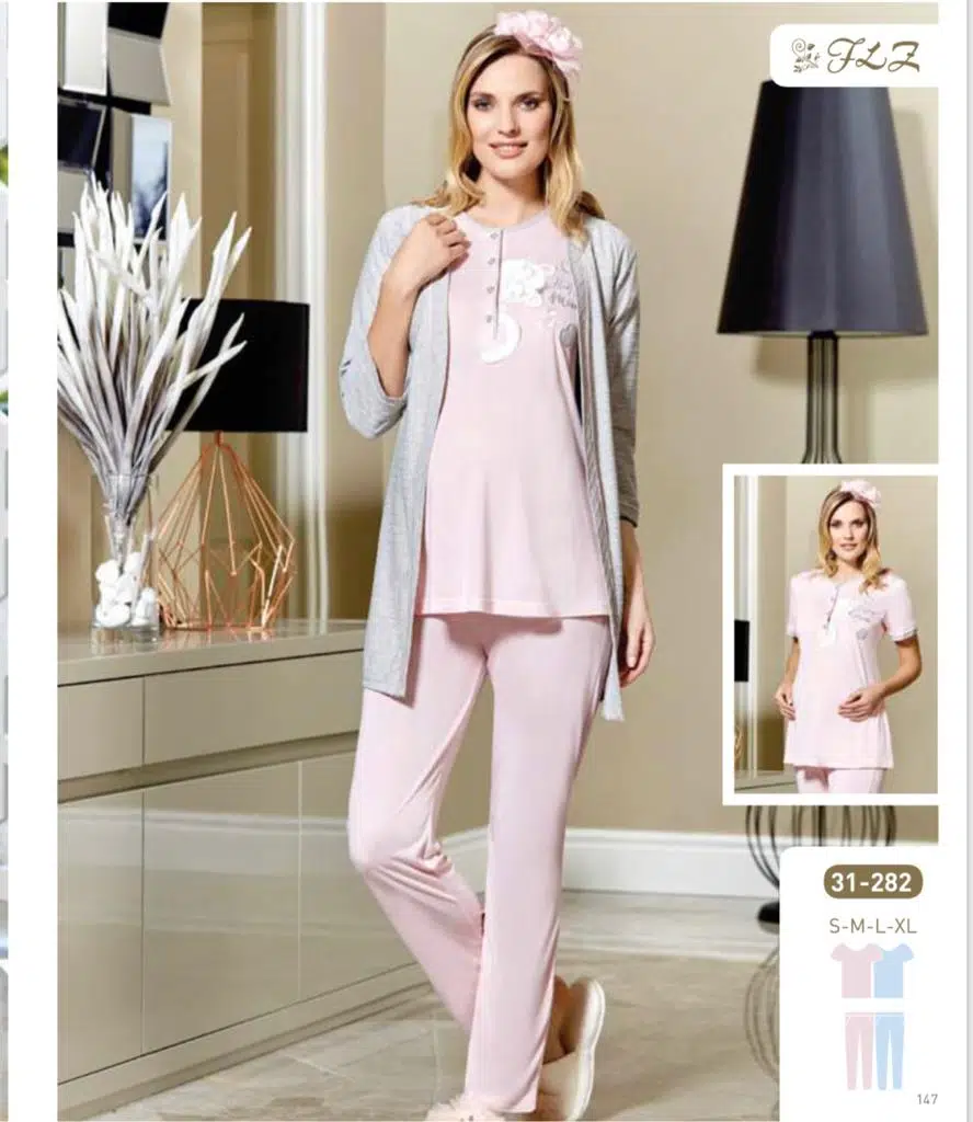 LZ 31-296 HAMİLELOHUSA YAZ YENİ SEZON KEDİLİ SPOR 3 LÜ PİJAMA SABAHLIK TK