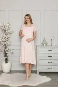 LİMİSSİ 1208 Pembe Hamile Lohusa Dantelli Gecelik