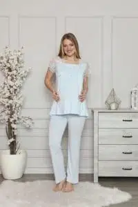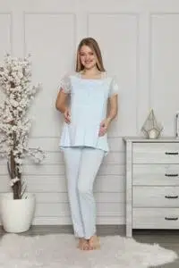 LİMİSSİ 2208 Mavi Hamile Lohusa Dantelli Pijama Tk
