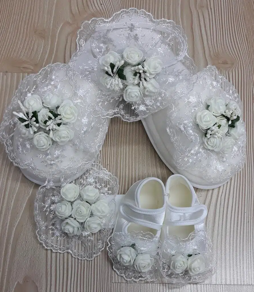 | Etiketler | Lohusa Terlik Taç Anne Bebek Takımı Çiçek Taç Ecru |