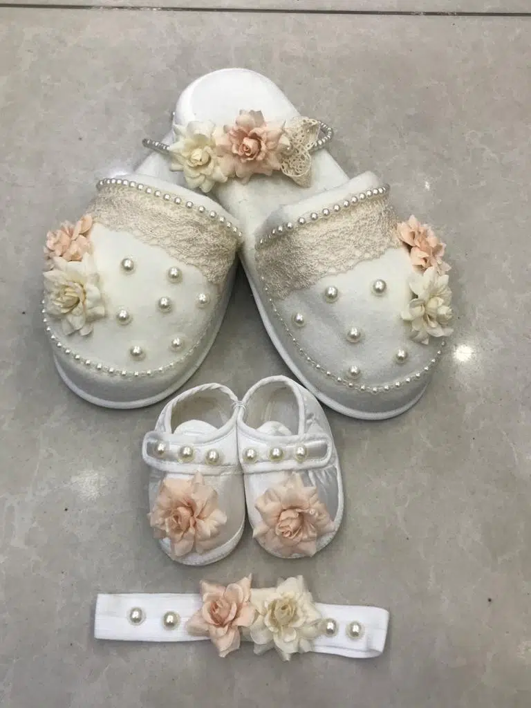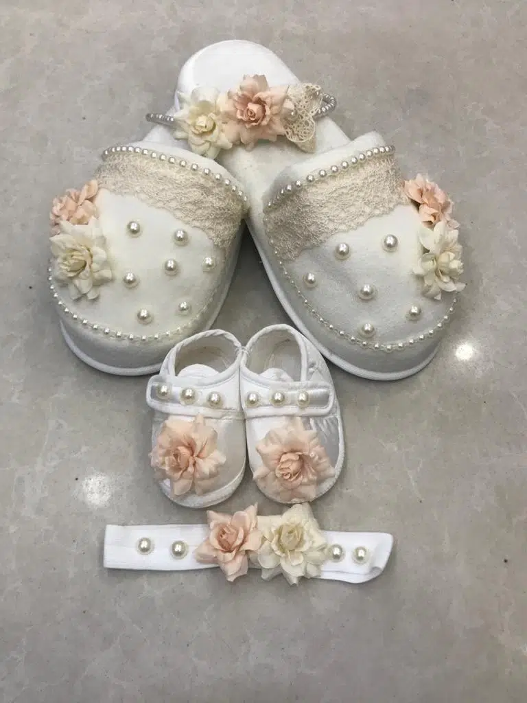 | Etiketler | Lohusa Terlik Taç Anne Bebek Takımı İncili Kuru Çiçek Taç Ecru |