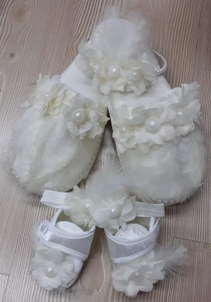 | Etiketler | Lohusa Terlik Taç Anne Bebek Takımı İncili Tüylü Taç Ecru |