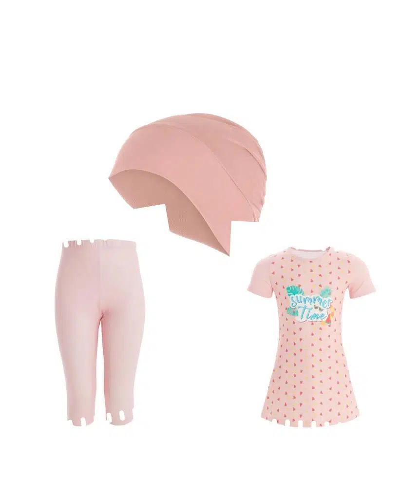 Maresiva 8133 Pembe Raddy Kısa Kol Çocuk Tesettür Mayo