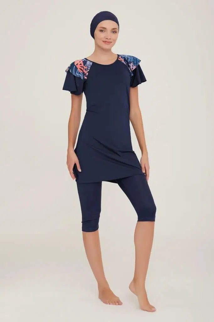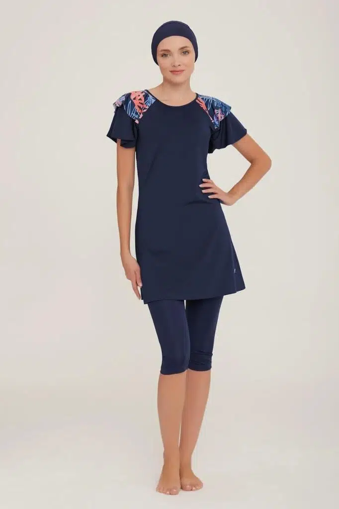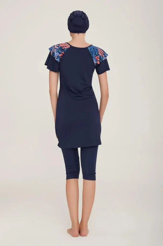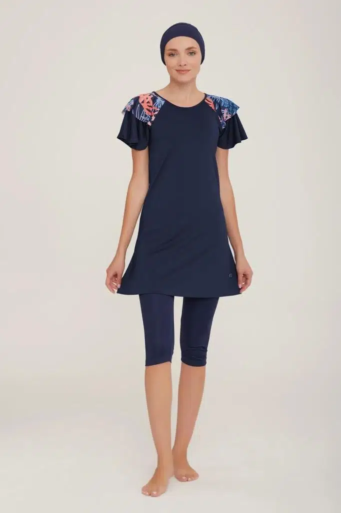 Maresiva Akbahar 8086 Kısa Kol Lycralı Dijital Desen Tesettür Havuz Mayo