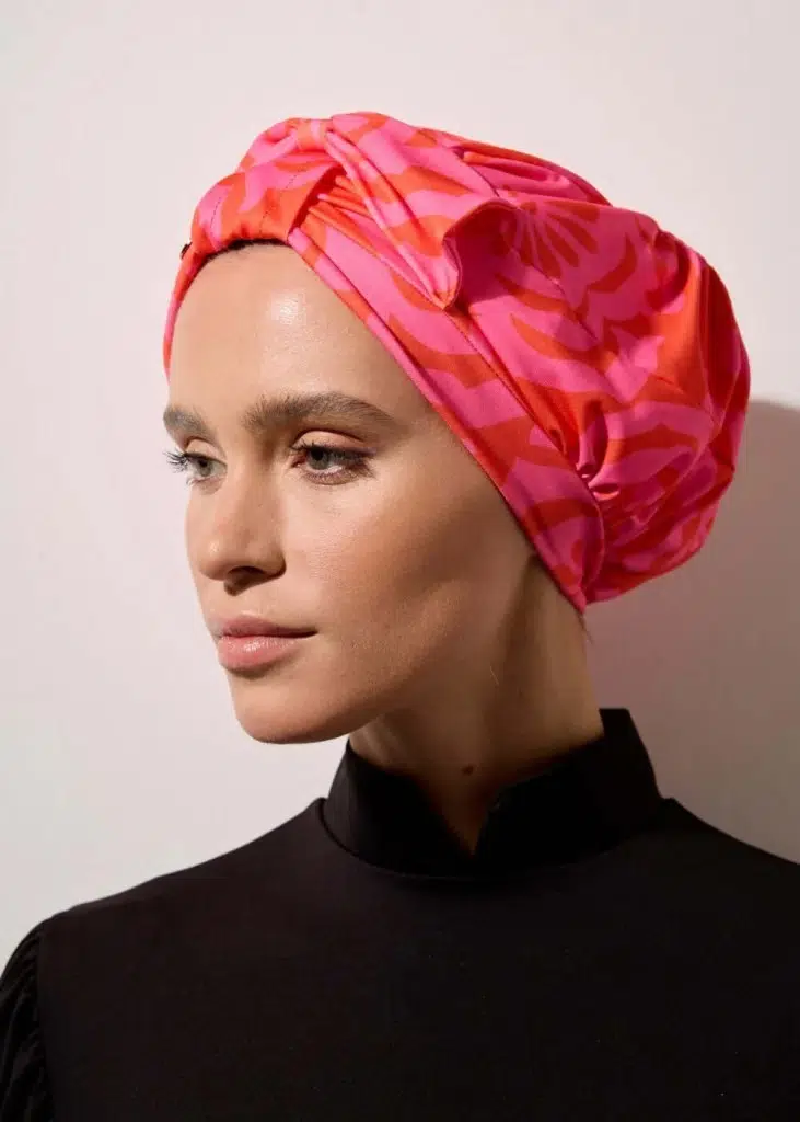 Pembe Fiyonklu Tesettür Deniz Bonesi;