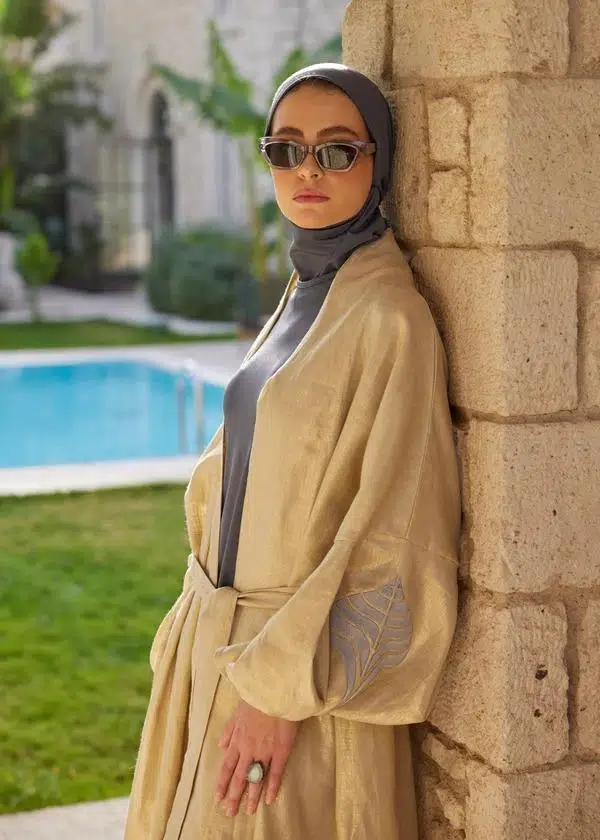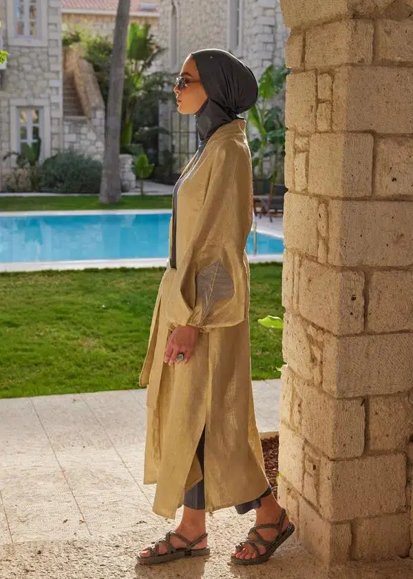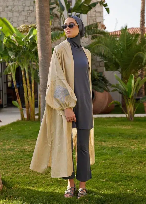 %100 keten, gold renk kaplamalıOrijinal kol kalıbı ile fark yaratanNakış detayı ile kalitesi kendini gösterenGövdeden ayrı kuşağı ile tercihinizi arttıran plaj elbisesi, kimono tarzındaFark yaratan özel tasarımlı kapalı mayolarımız,