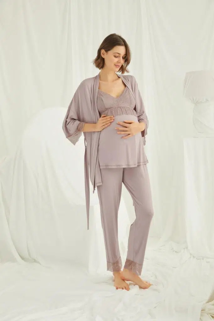 Lohusa 3 Lü Pijama Sabahlık Takımımız %94 Viskon %6 Elastan Lycralı Yumuşacık Kumaştan Üretilmiştir.