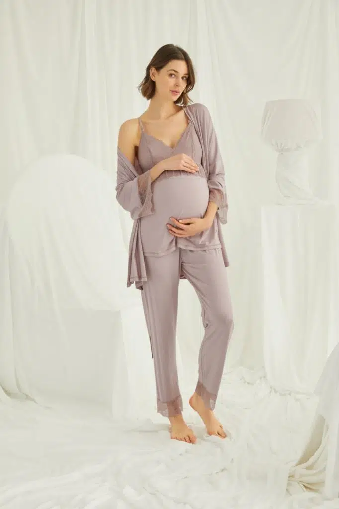 Monamise 18431 Vizon Hamile Lohusa 3 Lü Pijama Sabahlık Tk