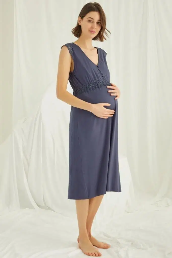 Monamise 18448 Lacivert Hamile Lohusa Gecelik