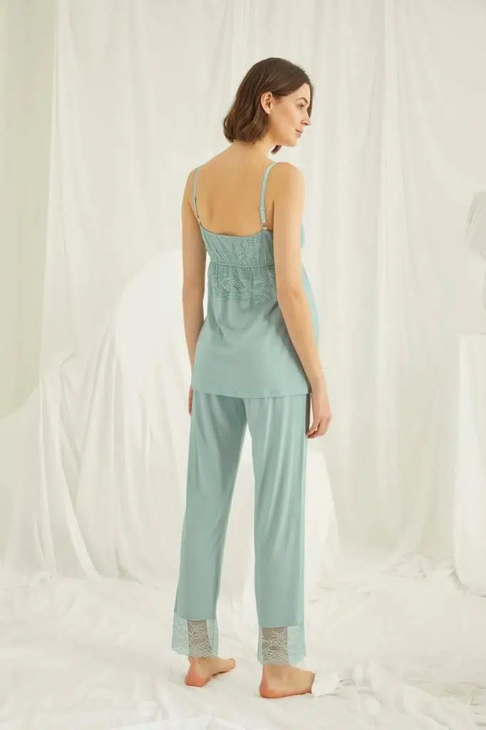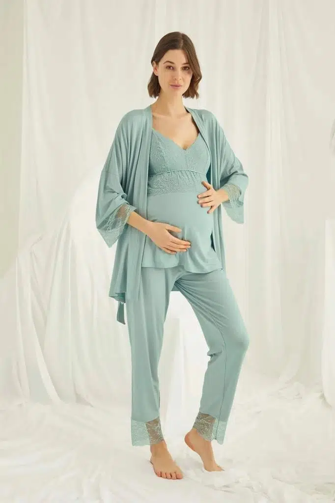 Monamise 18469 Yeşil Hamile Lohusa 3 Lü Pijama Sabahlık Tk