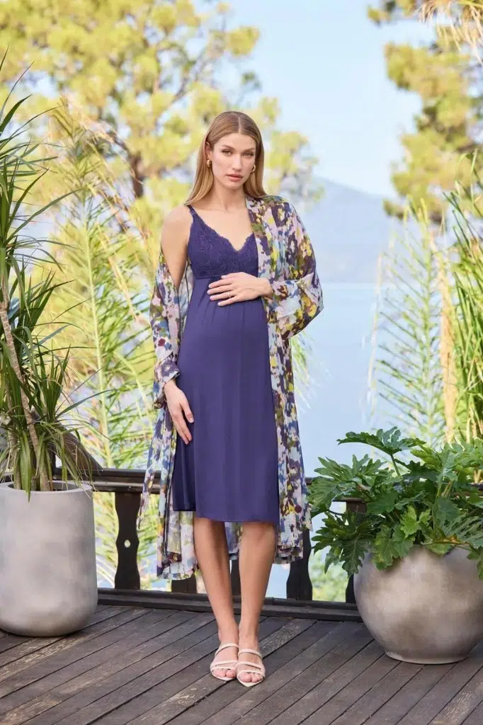 Monamise 25054 Lacivert Hamile Lohusa Gecelik Sabahlık Tk