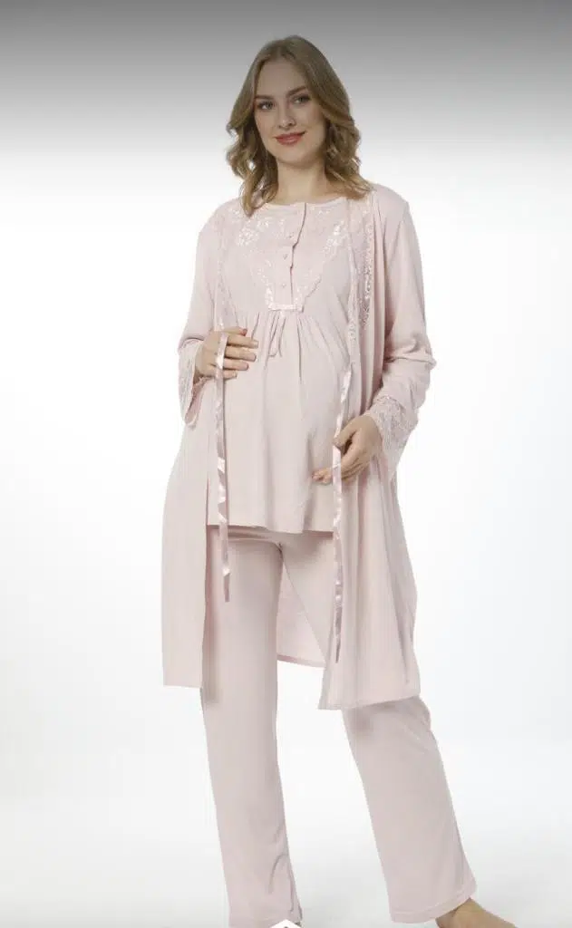 NEHİR 2020 PUDRA Hamile Lohusa Pijama Sabahlık 3Lü Takım PUDRA renk ile satıştadır