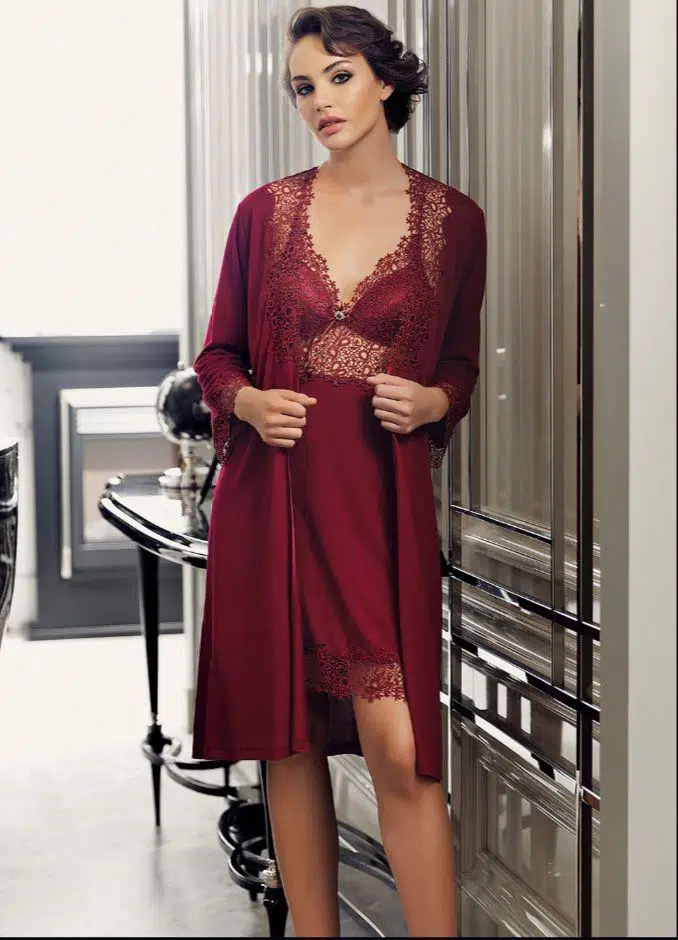 Perin 190 Bordo Penye 6 Lı Gecelik Sabahlık Çeyiz Set