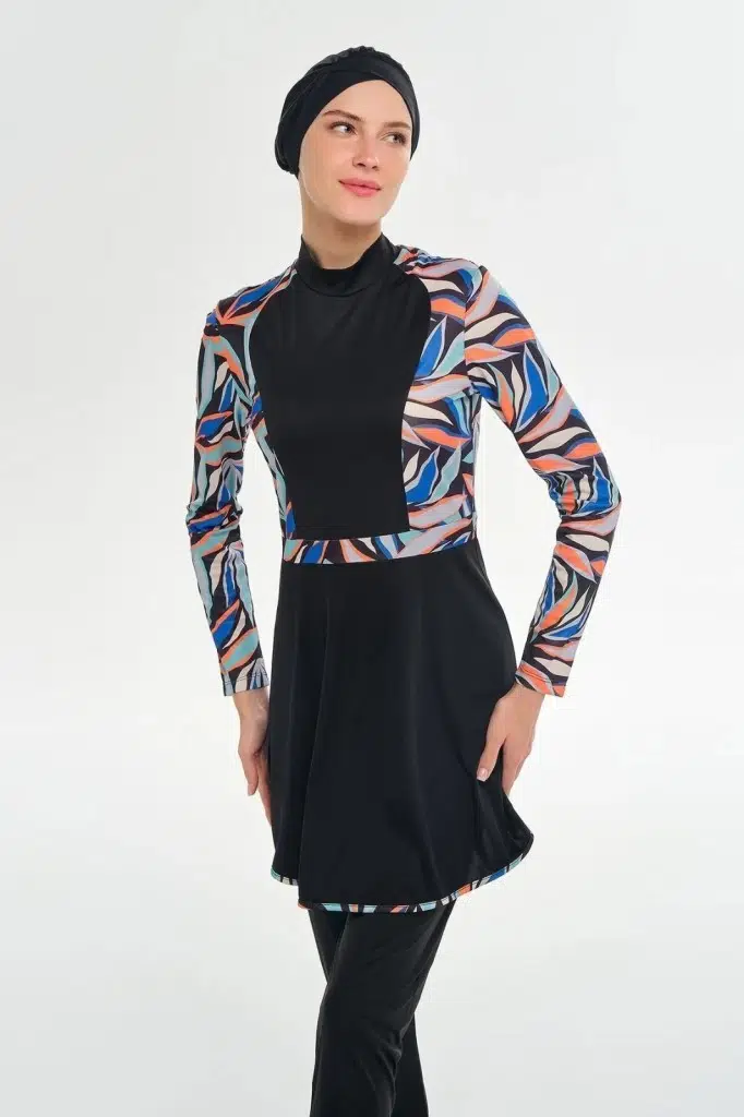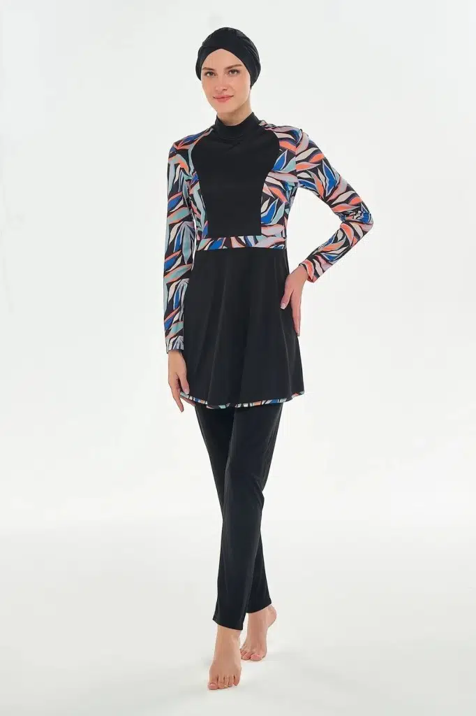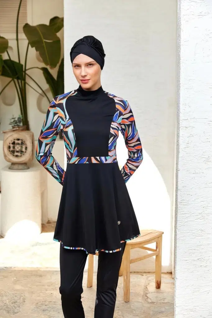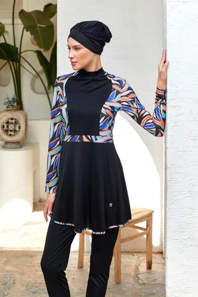Rozamay 253117 Halle Siyah Tam Boy Lycralı Dijital Desen Tesettür Mayo