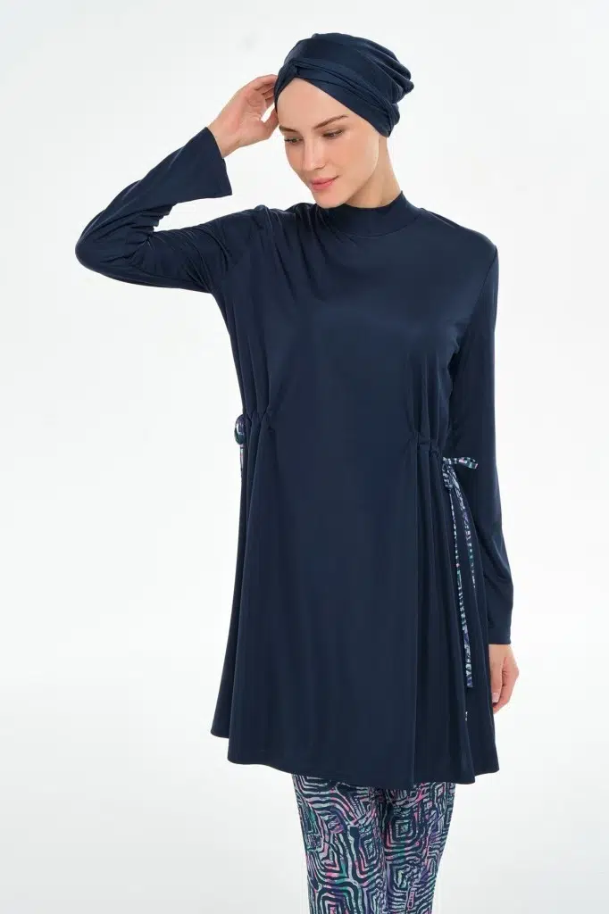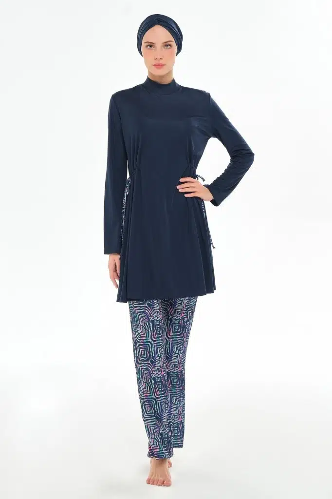 Rozamay 253125 Carter Lacivert Tam Boy Lycralı Dijital Desen Tesettür Mayo