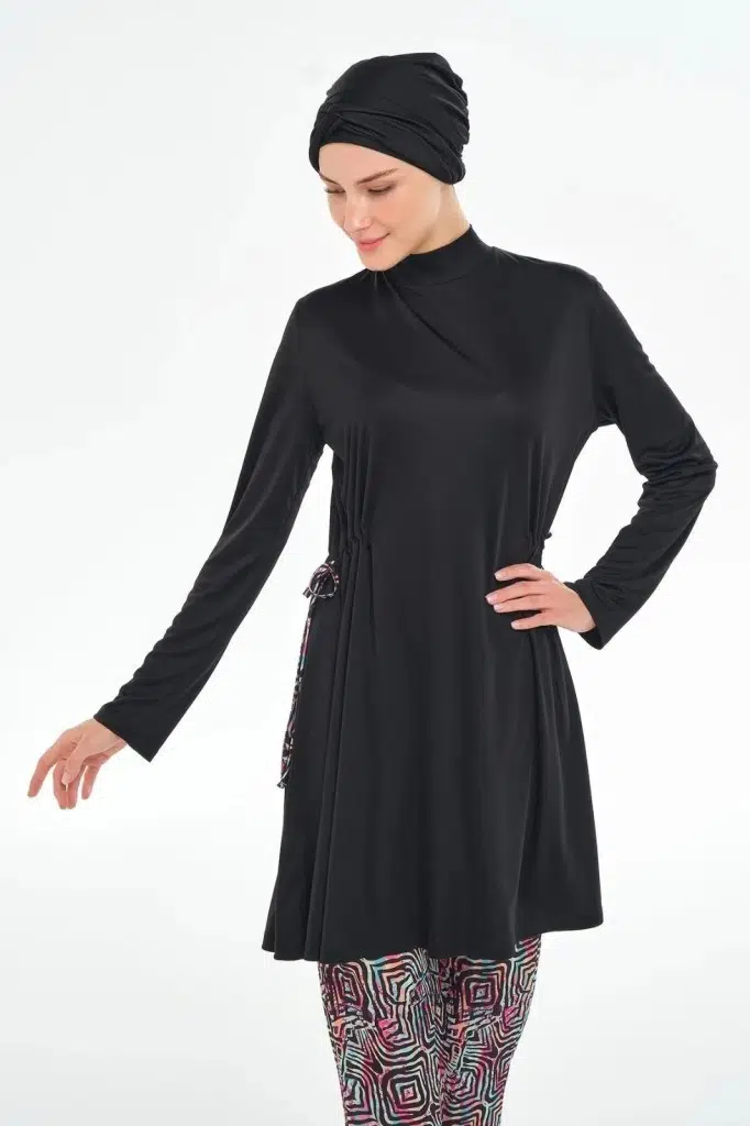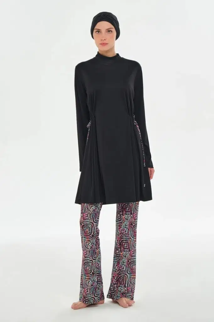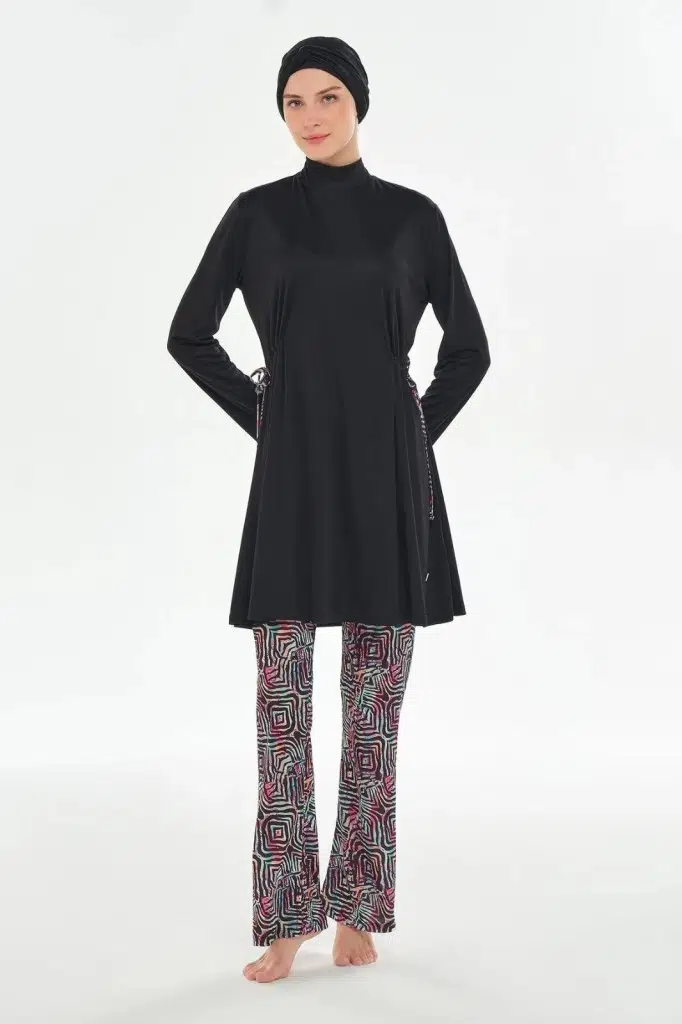 Rozamay 253125 Carter Siyah Tam Boy Lycralı Dijital Desen Tesettür Mayo