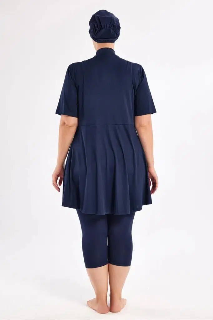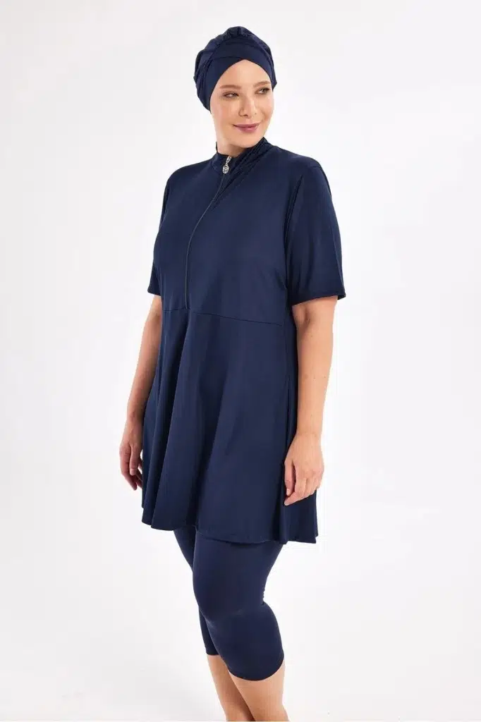 Rozamay 253803 Lacivert Naomi Battal Büyük Beden Kısa Kollu Lycralı Mayo