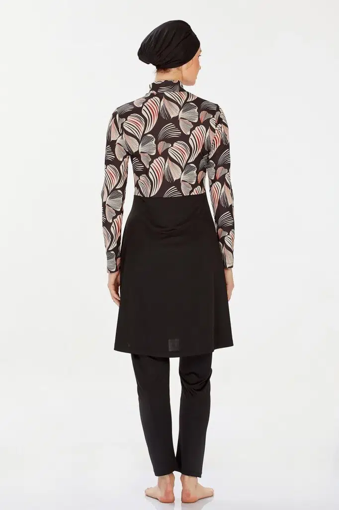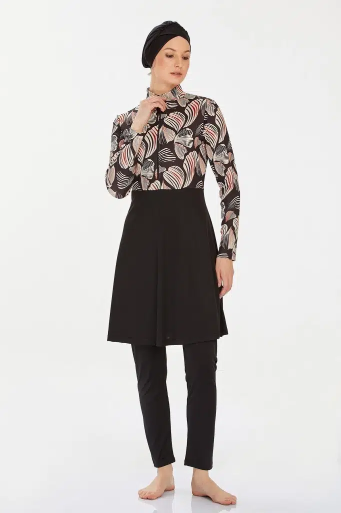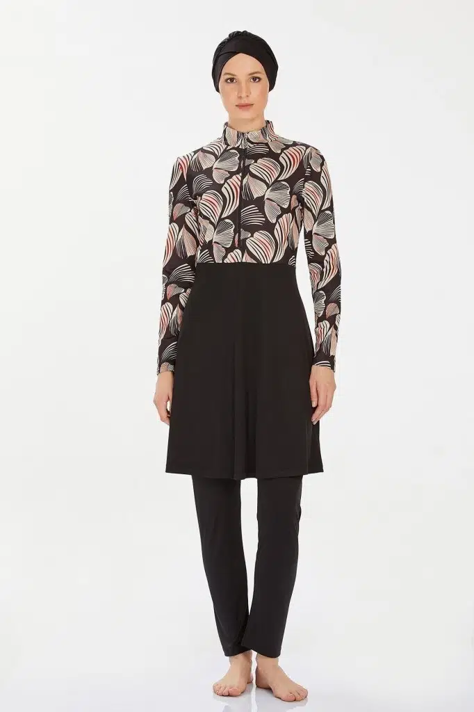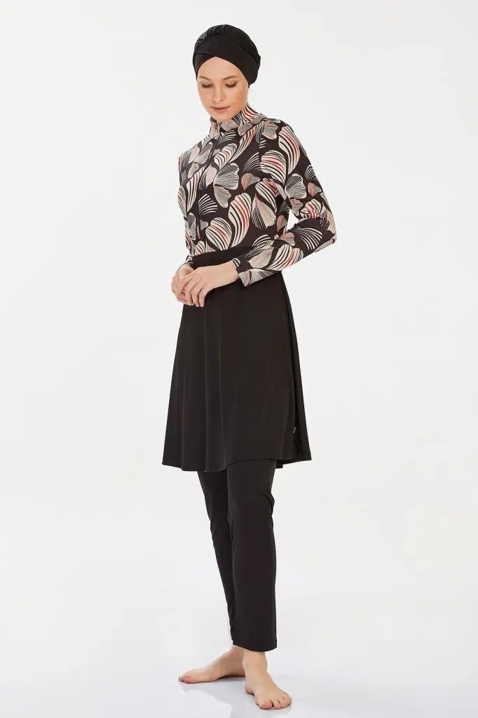 Rozamay 9224 Siyah Tam Boy Lycralı Dijital Desen Tesettür Mayo