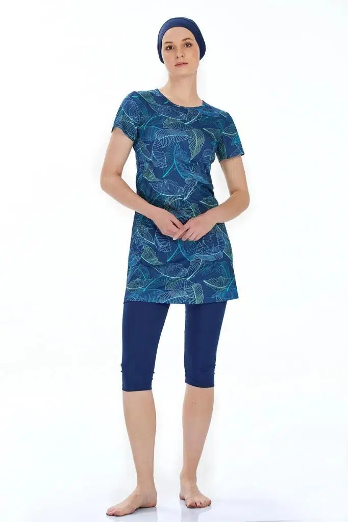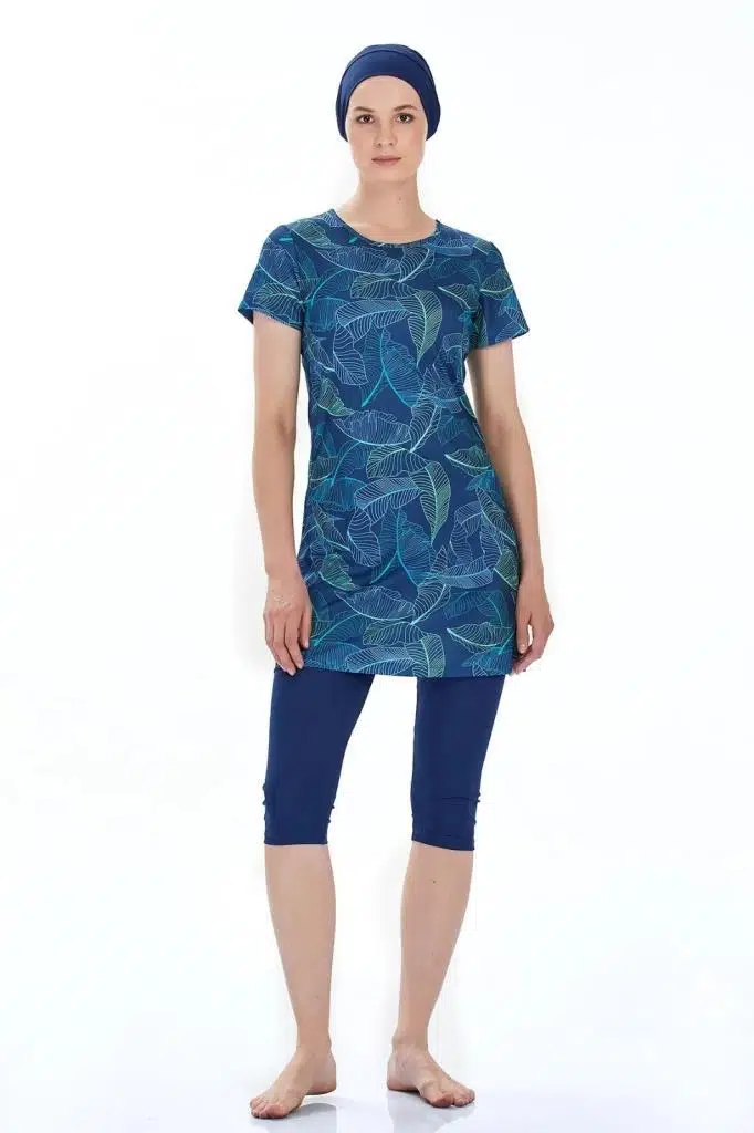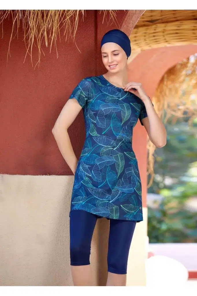 Rozamay 9304 Lacivert Dijital Desenli Kısa Kol Havuz Mayosu