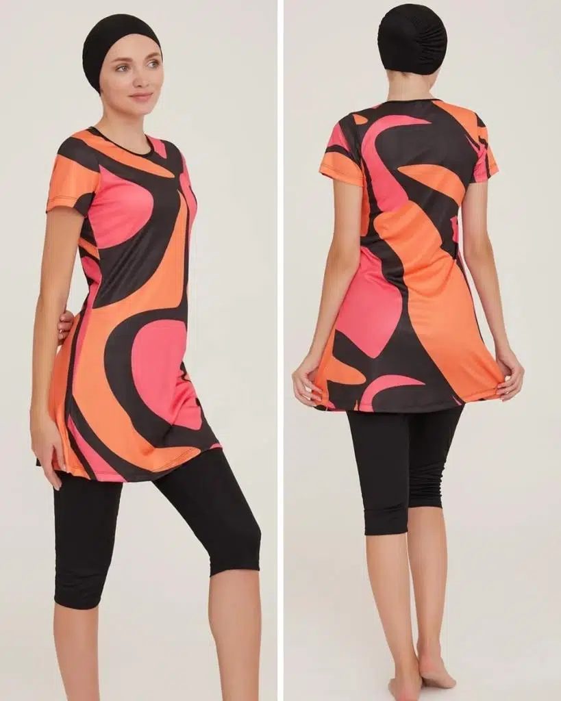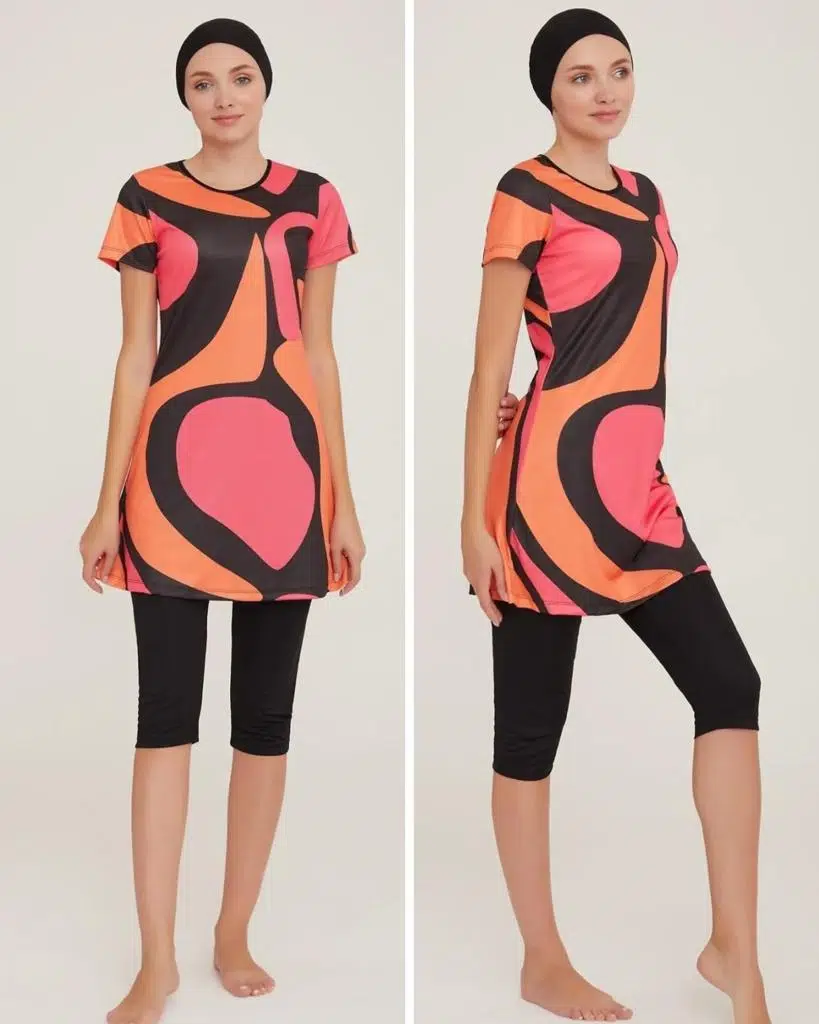 DİJİTAL DESENLİ LYCRALI KISA KOL TESETTÜR HAVUZ MAYOMUZ SATIŞTA SİZLER İÇİN PLAJ ŞIKLIĞINIZ TAMAMLAYAK MAYO.