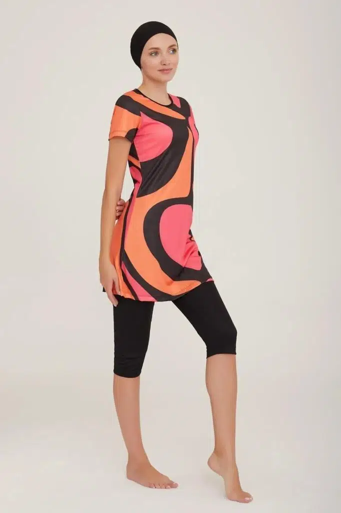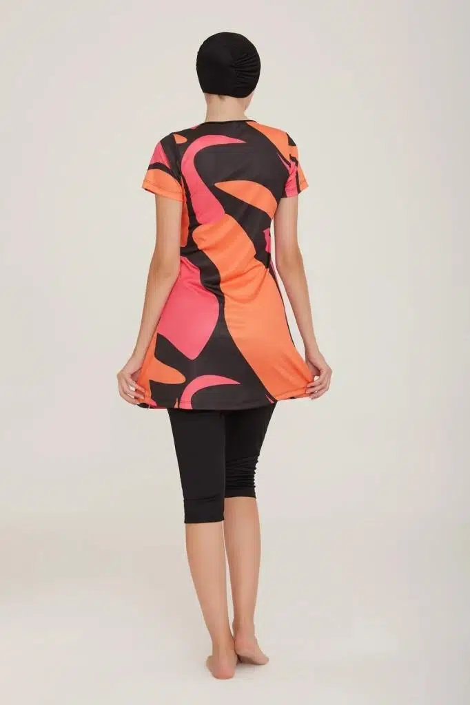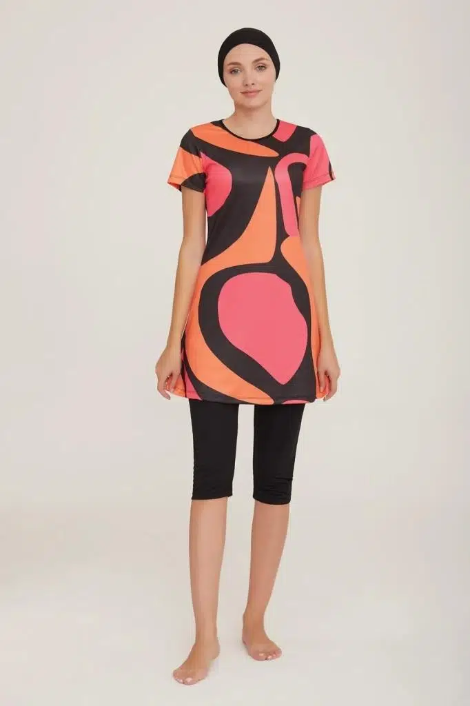 Rozamay Deren 9080 Kısa Kol Lycralı Dijital Desen Tesettür Havuz Mayo