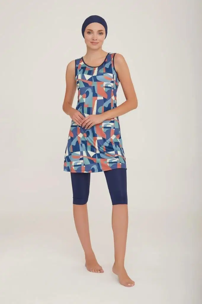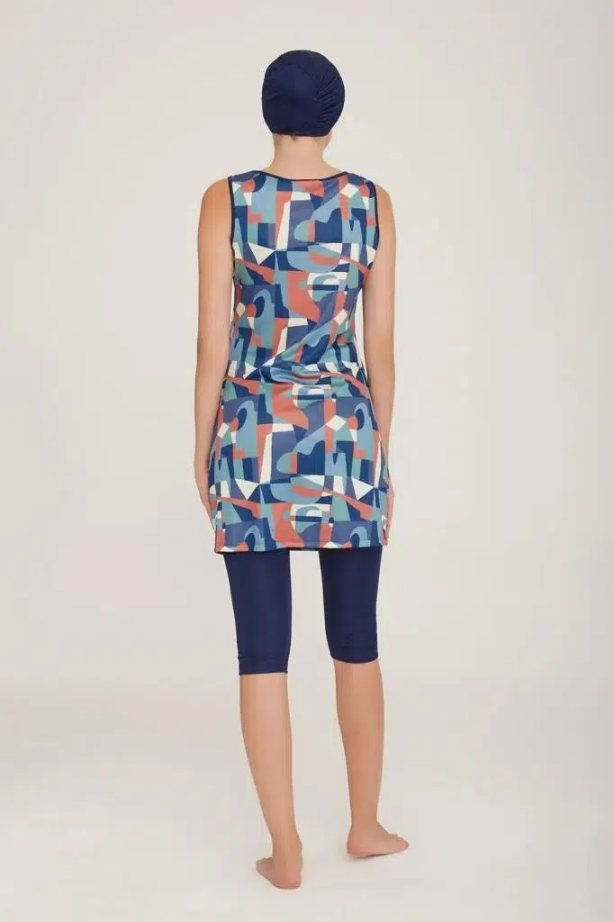 Rozamay Dilan 9096 Japone Kol Lycralı Dijital Desen Tesettür Havuz Mayo