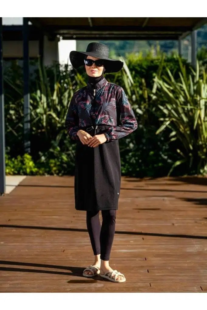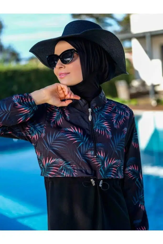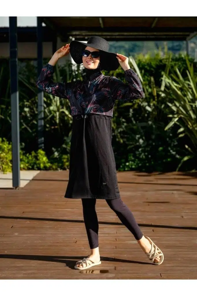 TESMAY 21103 Siyah Dijital Desenli Lycralı Tesettür Mayo