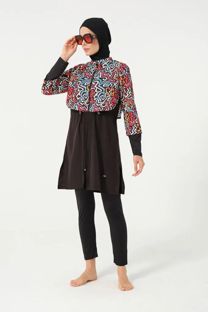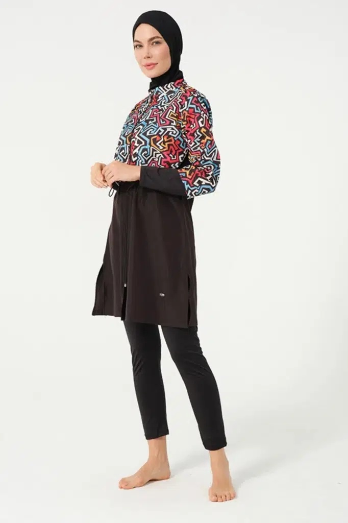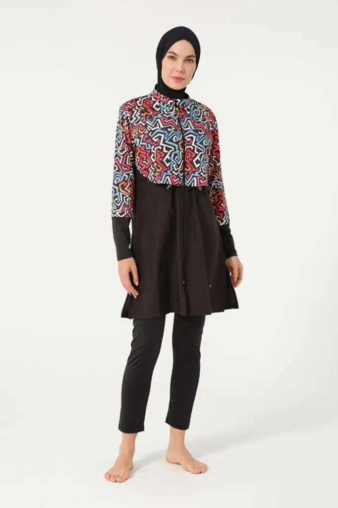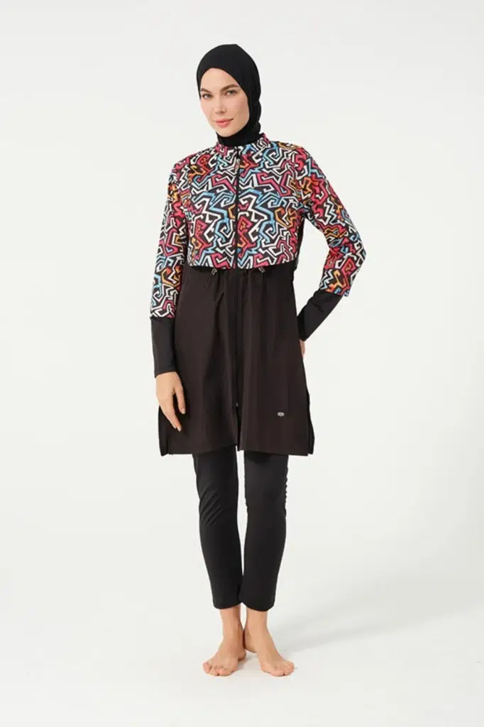 Tesmay 22153 Tam Boy Dijital Desenli Tam Boy Tesettür Mayo
