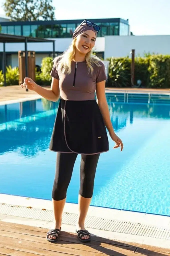 Tesmay 2493 Siyah -Kahve Kısa Kol Havuz Mayosu